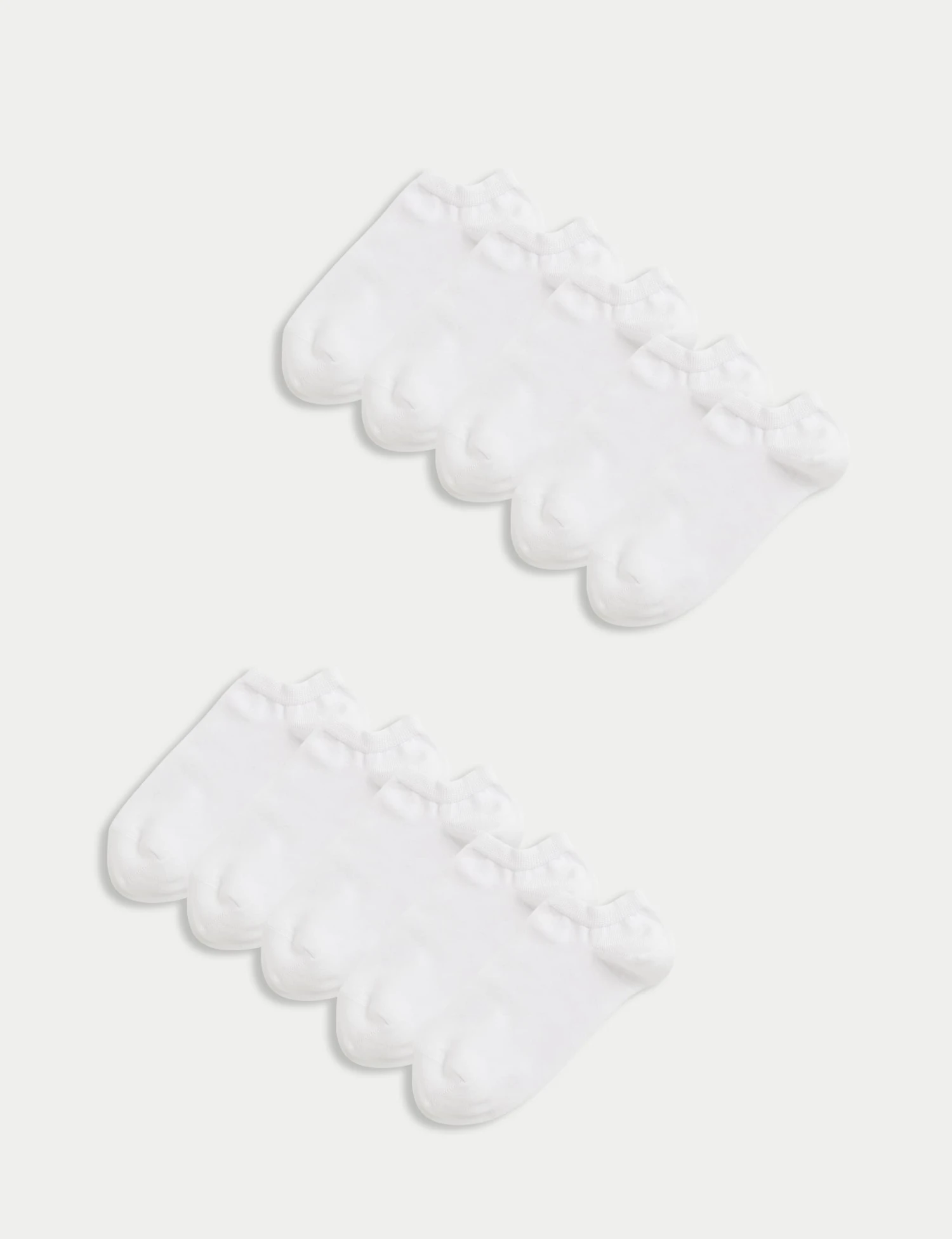 Choose from five different designs with this pack of 10 cotton-rich Trainer Liners™. Reinforced heels and toes ensure they stand up to regular wear. Freshfeet™ technology fights the bacteria that can cause odours. M&S Collection: easy-to-wear wardrobe staples that combine classic and contemporary styles.