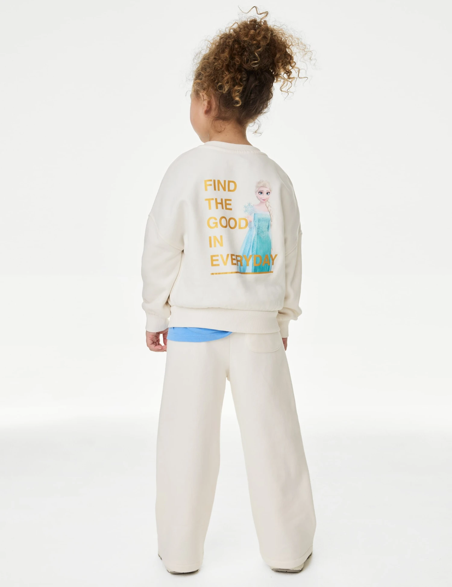 Little Disney Frozen™ fans will love this cotton-rich outfit. Designed in a regular fit, the cosy sweatshirt features a large Elsa graphic and a ‘Find Your Strength’ slogan. The matching joggers are cuffed at the ankles and have an elasticated waistband for comfort. Both pieces are complete with a soft brushed lining.