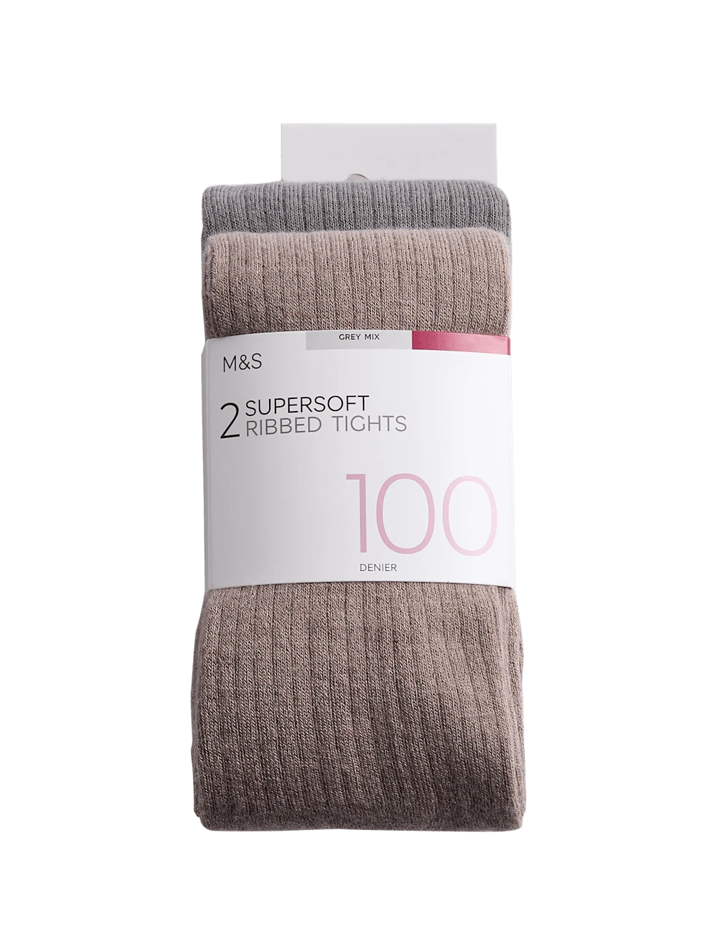 Add a cosy touch to your outfits with these supersoft knitted tights. They’re soft and stretchy, with a flattering ribbed texture and an opaque, 100 denier construction. Pack includes two pairs in different shades. M&S Collection: versatile styles in modern shapes with unique and playful details.