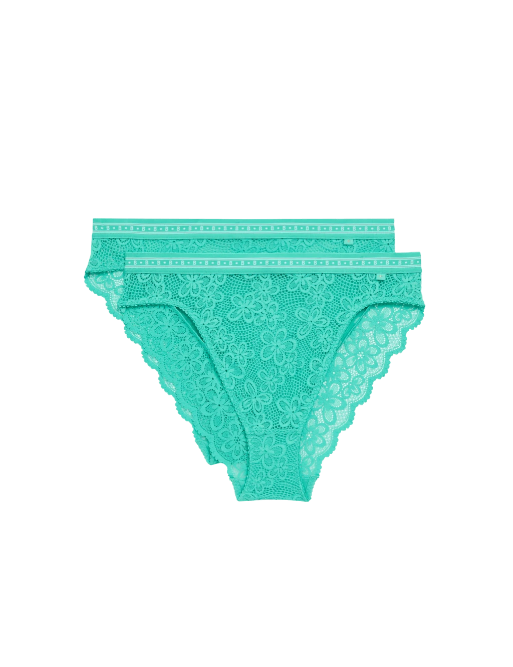 Intricate floral lace detailing lends an effortlessly feminine feel to these knickers from B by Boutique. They come in a handy two-pack, with a flattering high leg shape and added stretch for extra comfort. Scalloped edges add a pretty touch, while B branding on the high elasticated waistband provides a premium finish. B by Boutique: Playful lingerie designed for good times.