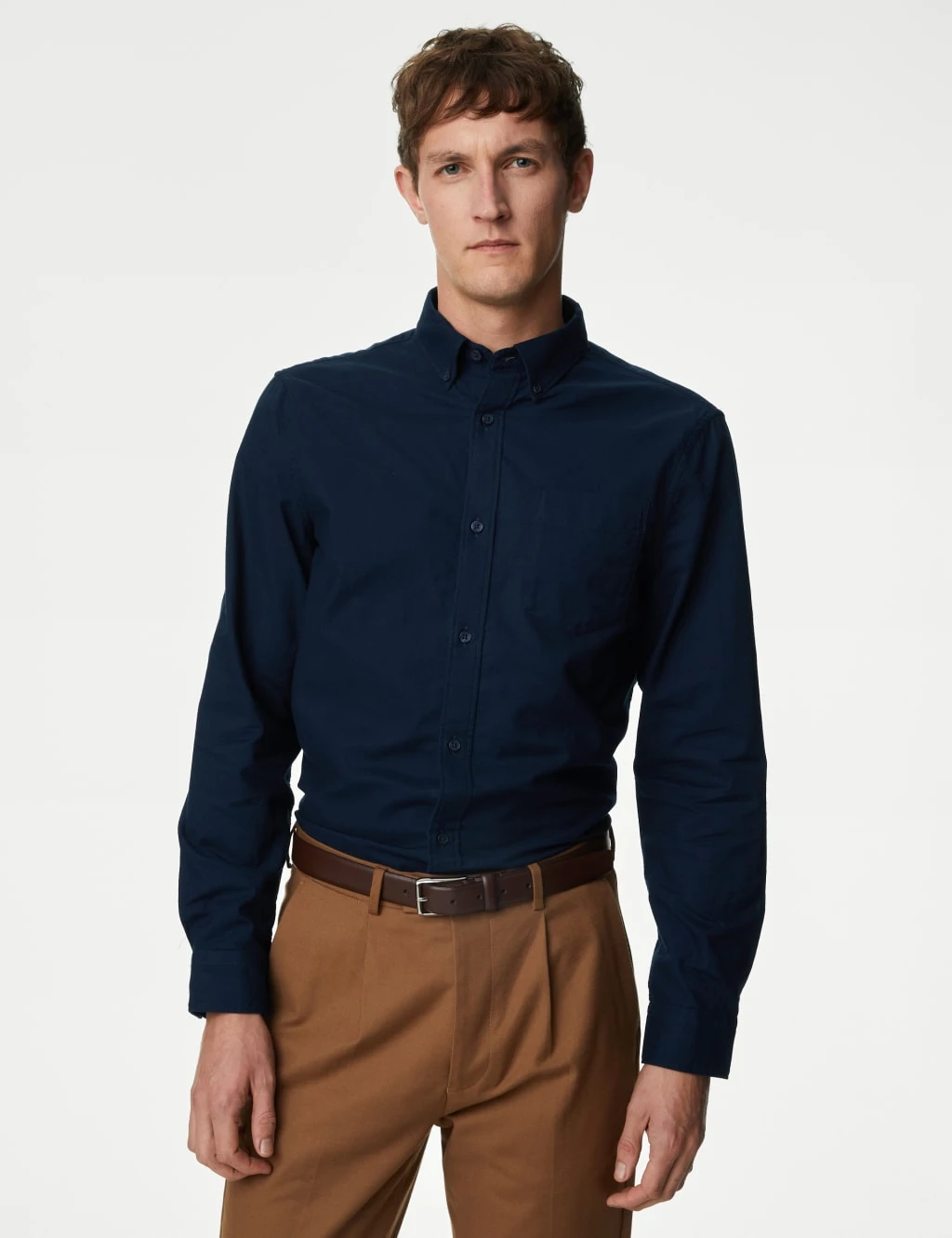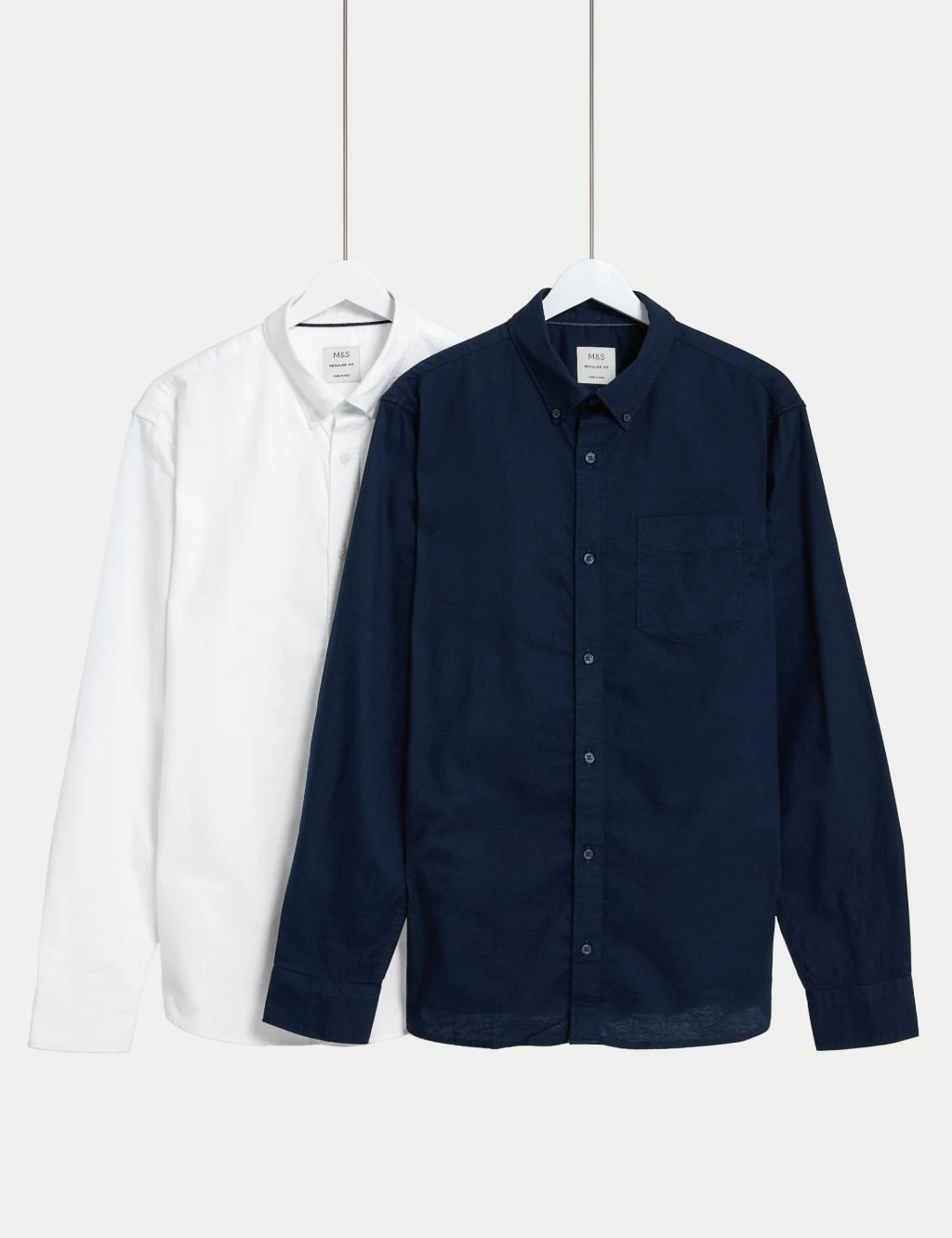 Stock up on wardrobe essentials, with this handy two-pack of pure cotton Oxford shirts. Comfortable regular fit, with long sleeves and a neat button-down collar. Our easy to iron finish makes light work of the laundry. We only ever use responsibly sourced cotton for our clothes.