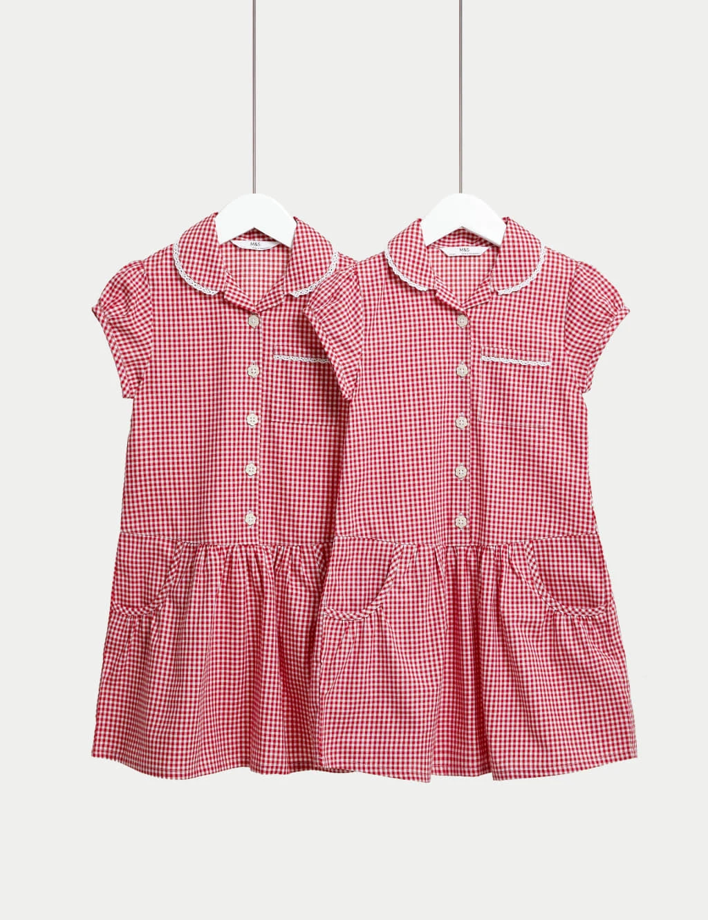 For style and comfort our two pack plus fit gingham dresses are the perfect option. They are made from a cotton-rich fabric and offer extra room through the body for added comfort throughout the day. Smart button-up front, and flared skirt with two handy pockets. Easy-to-iron finish means it just needs a quick press and it’s ready to go. We only ever use responsibly sourced cotton for our clothes.