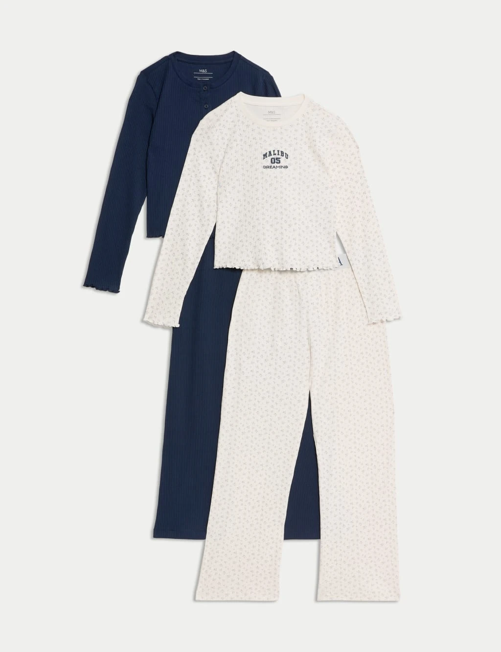 With this two-pack of pure cotton pyjamas, bedtime has never been comfier. Easy regular fit. The pack includes one pair with a Henley-style top and one with all-over florals and a cool ‘Malibu’ slogan on the top.