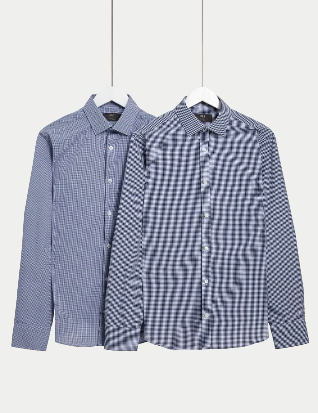 Update your wardrobe with these cotton-blend gingham shirts. Sleek slim fit. Classic single cuffs for a look that works with a wide range of smart and casual outfits. Easy-to-iron finish means they need no more than a quick press before wearing.
