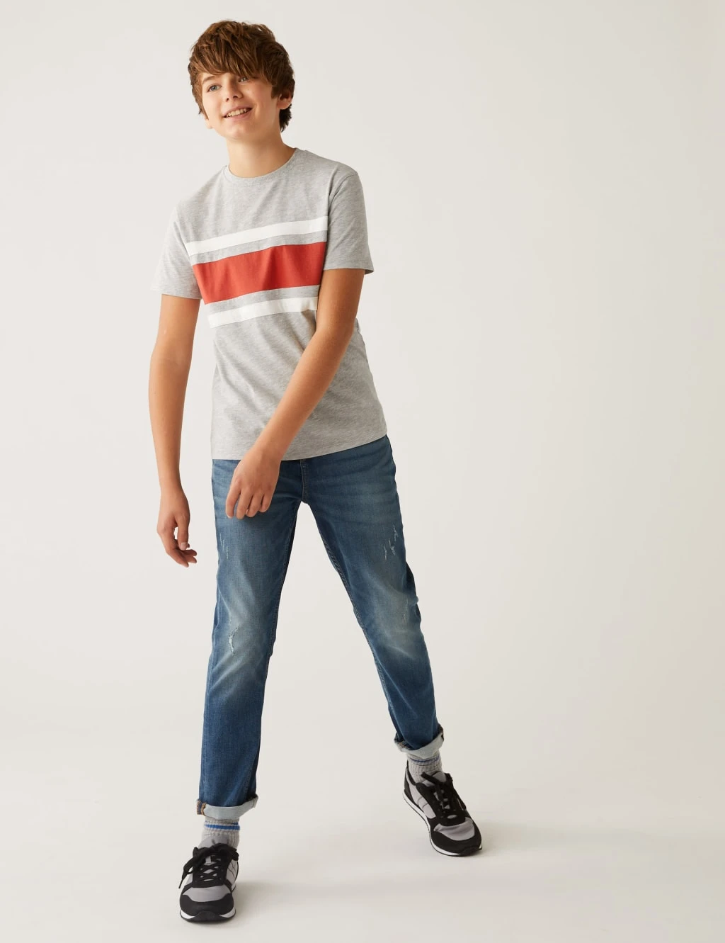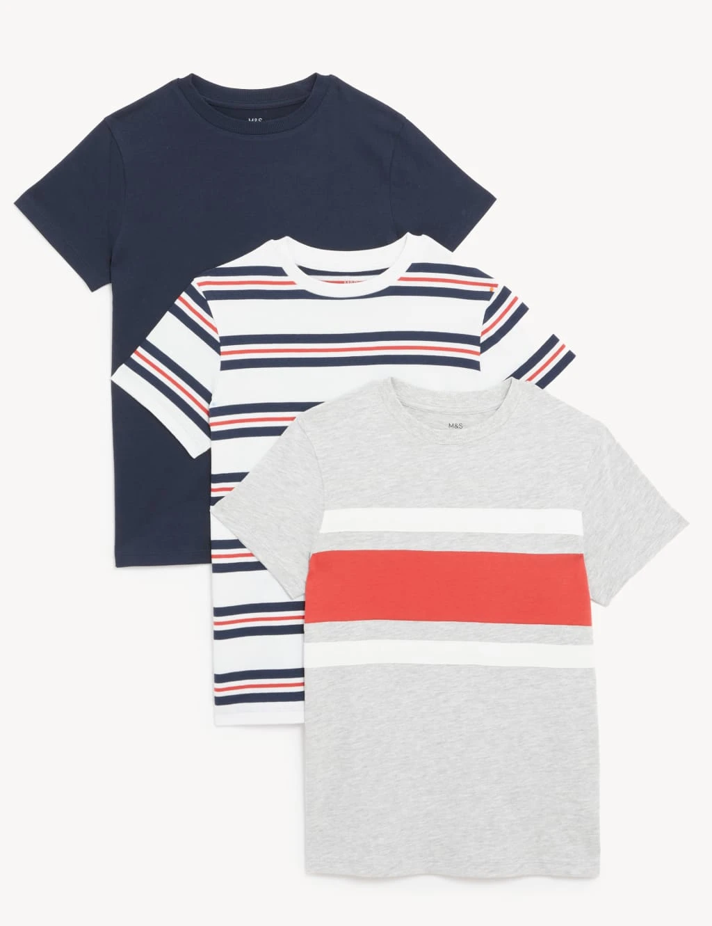 Stock up on essentials with our three-pack of cotton-rich tees. Cut in a regular fit, they come in a choice of bold stripes, colour block and plain designs. Our StayNew™ technology helps keep the colours looking fresh, wash after wash. We only ever use responsibly sourced cotton for our clothes.