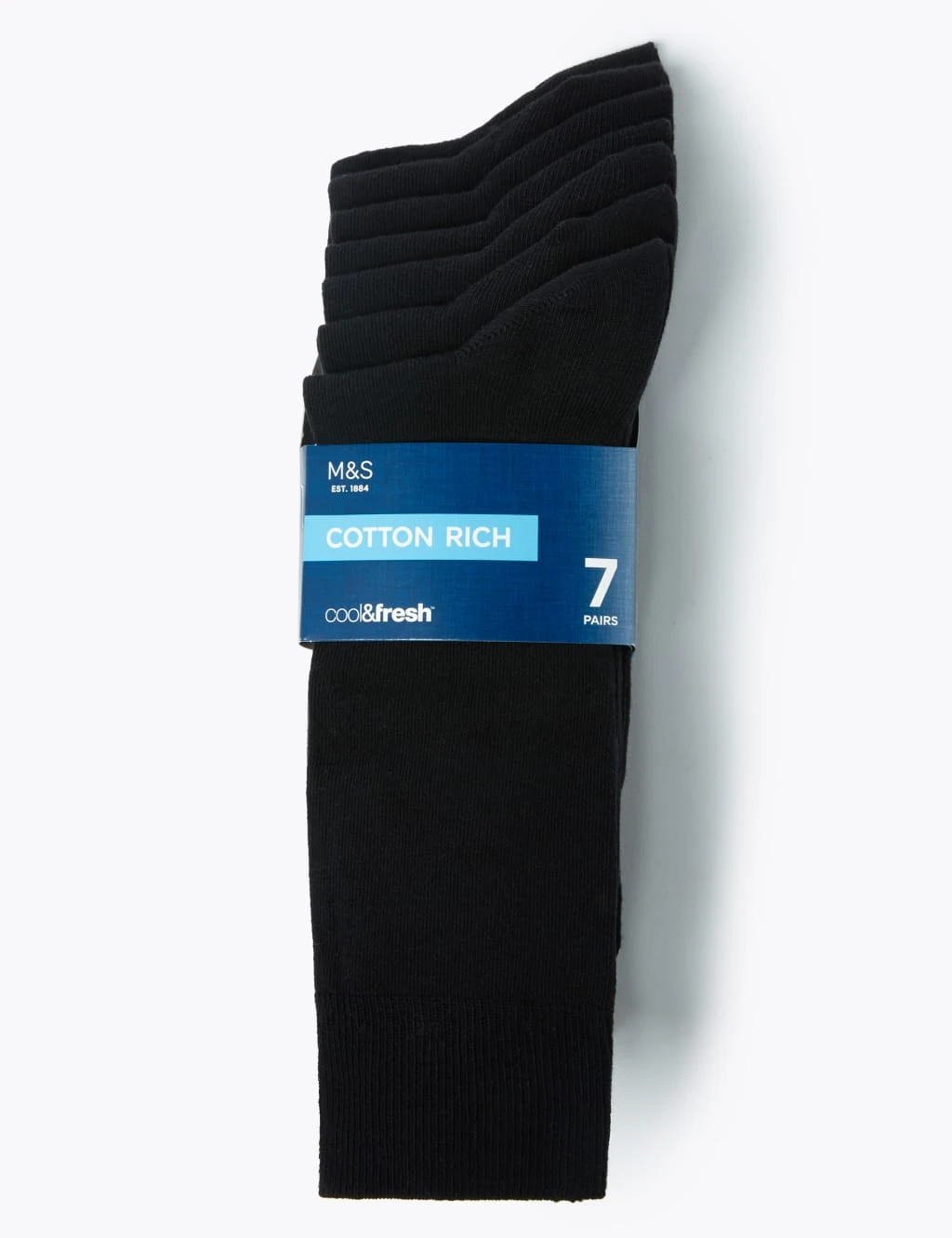 Keeping you cool and fresh throughout the day, these essential men’s socks boast antibacterial and moisture wicking properties to keep sweat and unwanted odours away. The multipack of men’s socks are a must have for stocking up your sock drawer with their comfortable, soft cotton rich composition and simple design. We only ever use responsibly sourced cotton for our clothes.