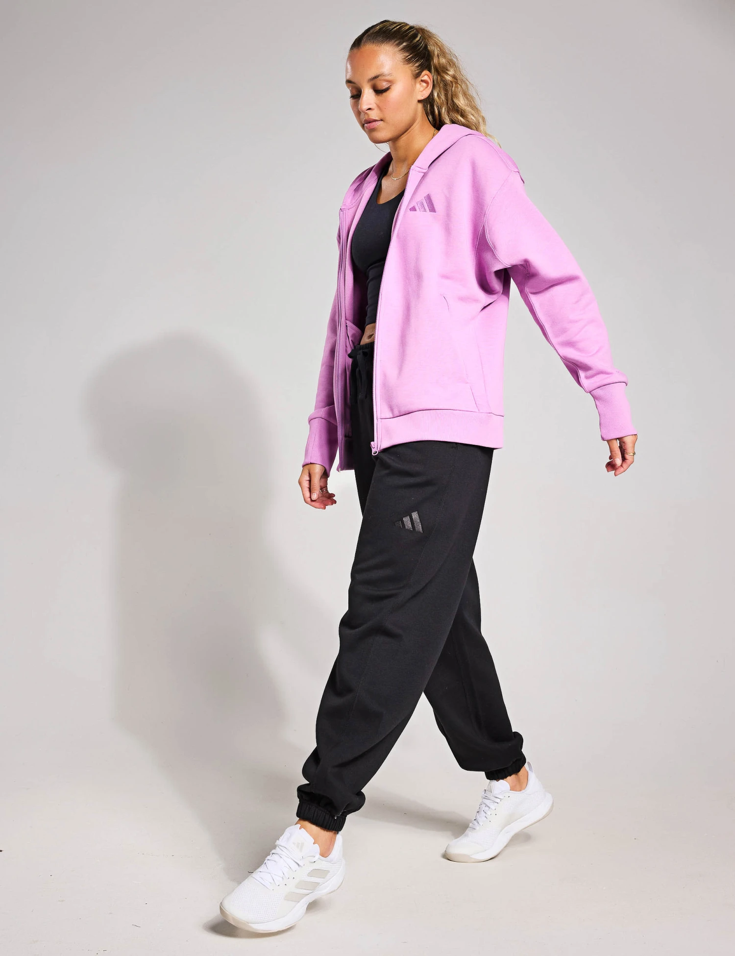 Create an effortless casual look with these cotton-rich fleece joggers from adidas. They’re cut straight through the leg with cuffed ankles, for a loose, relaxed silhouette. A drawstring fastening at the mid-rise waist helps you find the perfect fit. Side pockets add a practical touch, while an embroidered 3-bar logo provides a distinctive finish.
