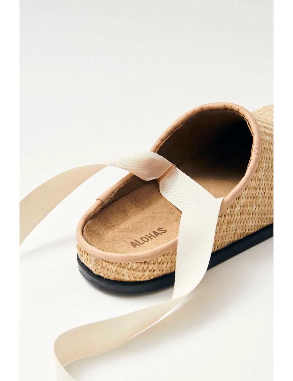These Alohas mules will add a rustic touch to any look. The woven mules have a rounded toe and open back and come complete with a ribbon tie for a feminine finish.