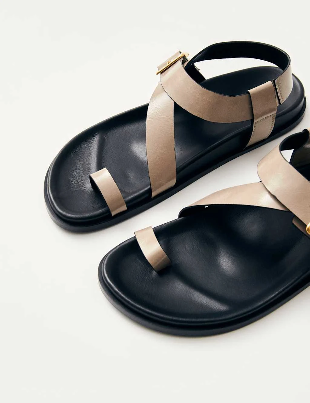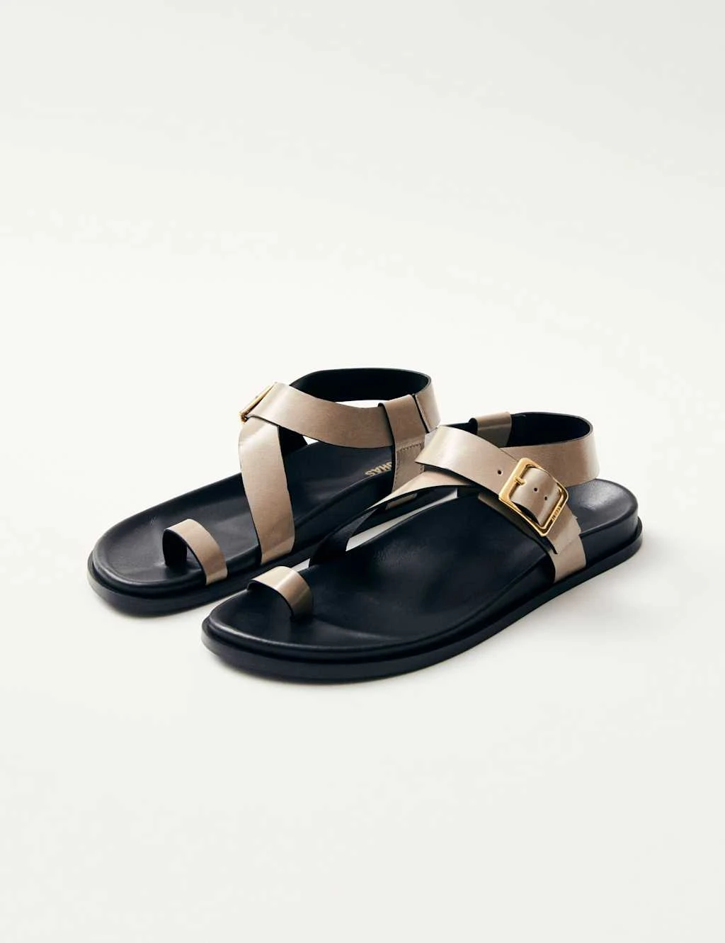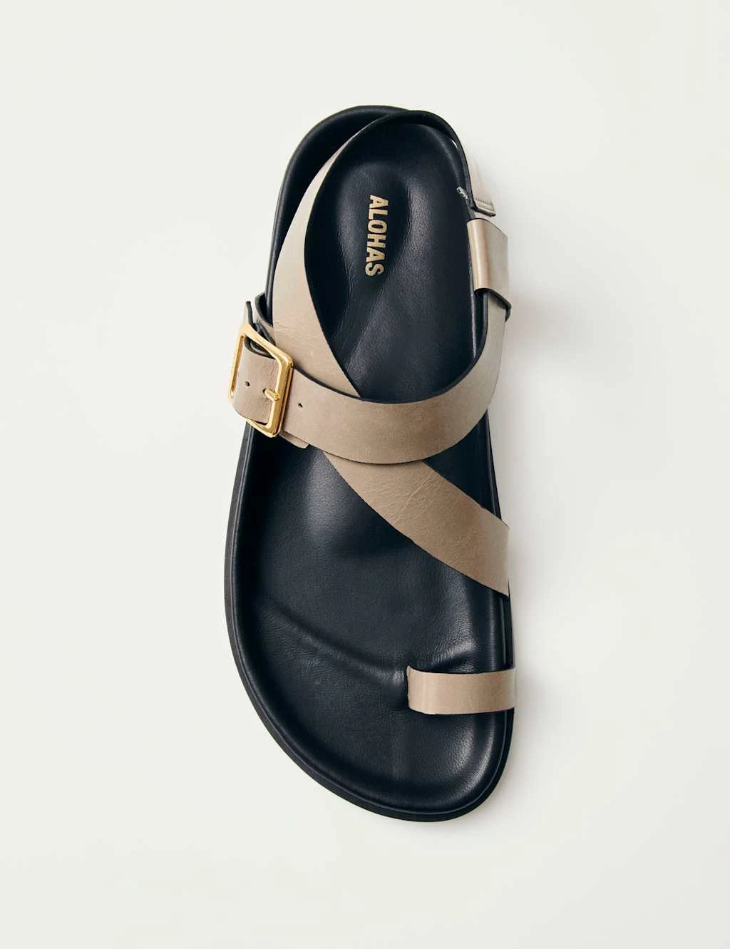 Bring a contemporary finish to your looks with these leather sandals by Alohas. They’re designed with a contemporary toe ring and a strap that wraps around the ankle, complete with a buckle fastening for an adjustable fit. Moulded insoles keep your feet supported.