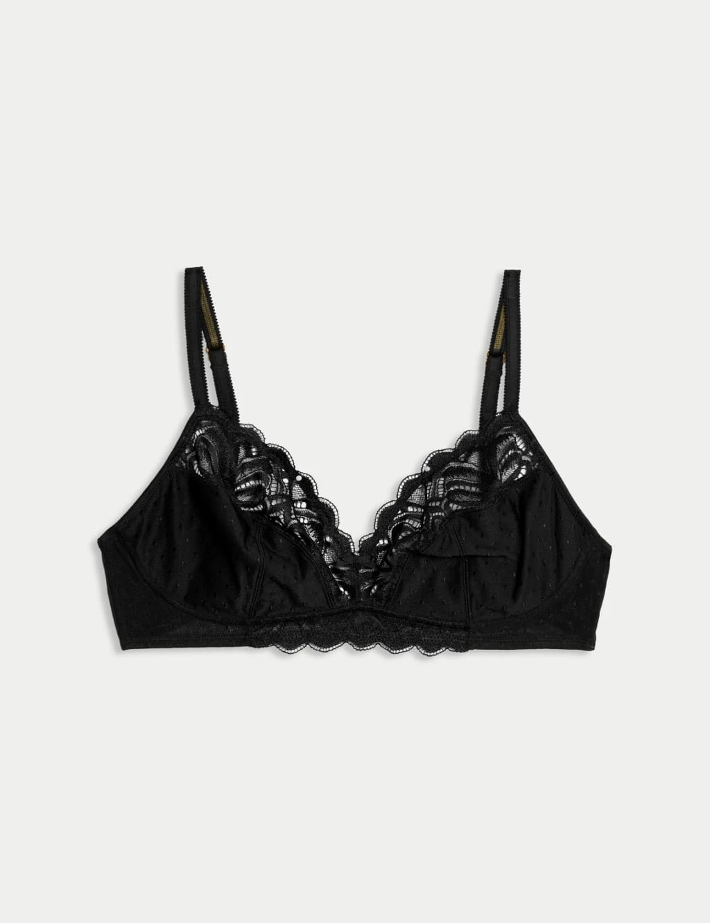 Enjoy supportive comfort without any wires or padding in this pretty dobby spot bra. Its three-part, full-cup design creates a flattering silhouette with natural forward projection. The delicate lace trims add an extra dose of femininity. M&S Collection: versatile styles in modern shapes with unique and playful details.
