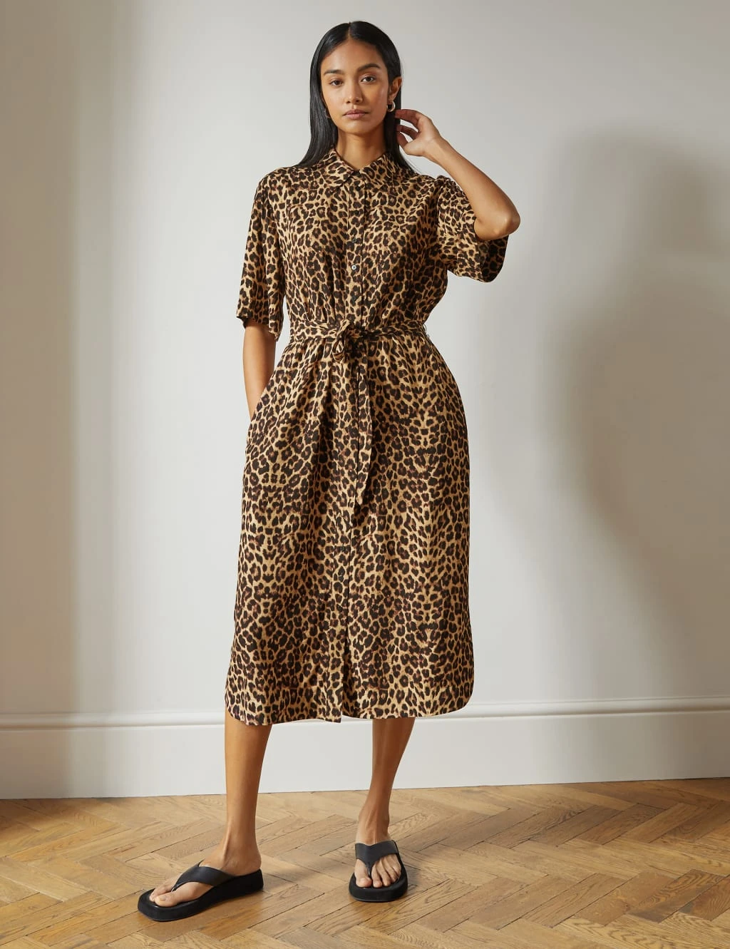 With its bold animal print, this short-sleeved shirt dress by Albaray will create a standout look. Cut to a regular fit, it features a smart collared neck and a midi-length hemline with curved side splits. A removable tie at the waist adds an elegant touch to this button-through design.