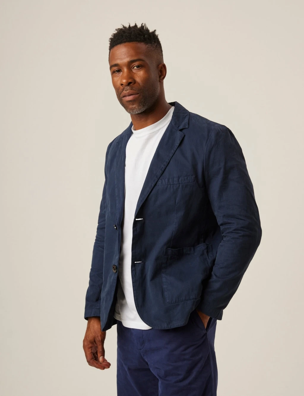 This Peregrine blazer is made from pure cotton fabric that’s soft and breathable. It’s designed in a smart single breasted style, with a classic notch lapel and a neat two-button fastening. Patch pockets at the waist and a welt pocket at the chest provide handy storage, while button detailing on the cuffs adds a refined touch.