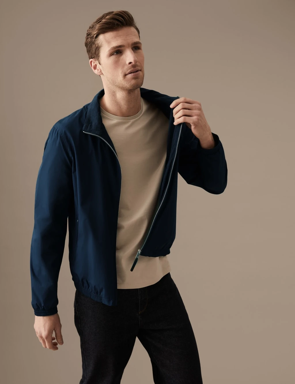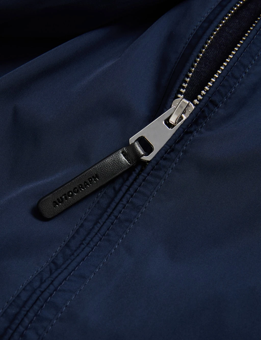 This rain-defying bomber jacket from our Autograph collection ticks the boxes for both style and practicality. It comes in a comfy regular fit and features our water-resistant Stormwear™ finish. The front zip fastens all the way up to the neck, creating a snug funnel shape. The design is lined with soft jersey fabric for comfort and comes complete with zipped side pockets to help keep your valuables safe and secure. Autograph: premium investment pieces featuring contemporary cuts and refined finishing touches.