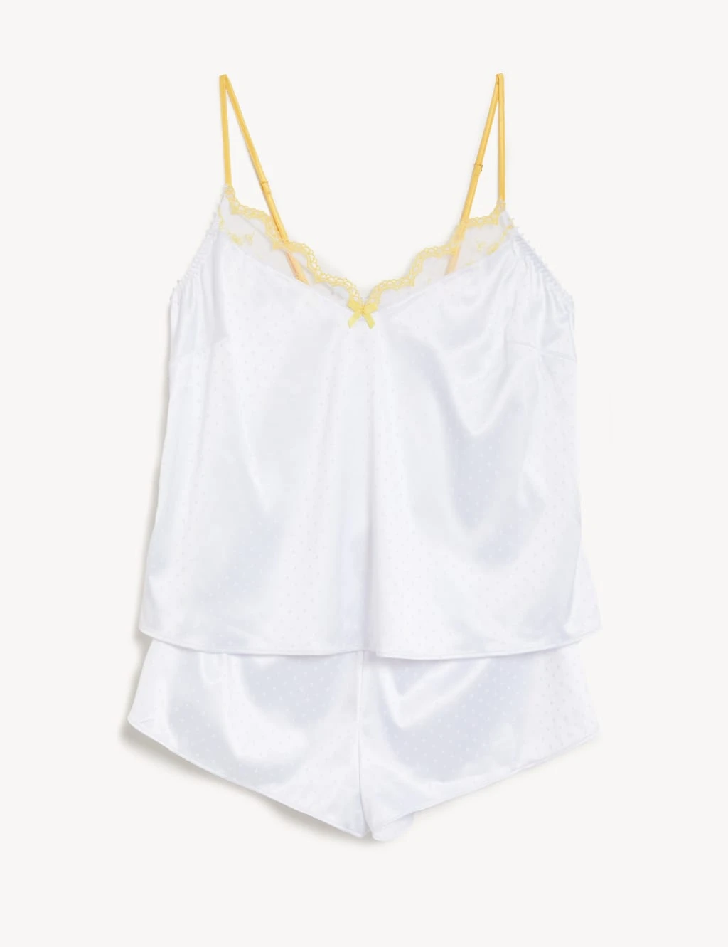 Bring a luxurious feel to your lingerie collection with this cami set from the Boutique x Damaris collaboration. It features a classic strappy top and pull-on shorts, both complete with added stretch for supreme comfort. This set is crafted from smooth satin with pretty flower embroidery and mesh trims for a premium finish.