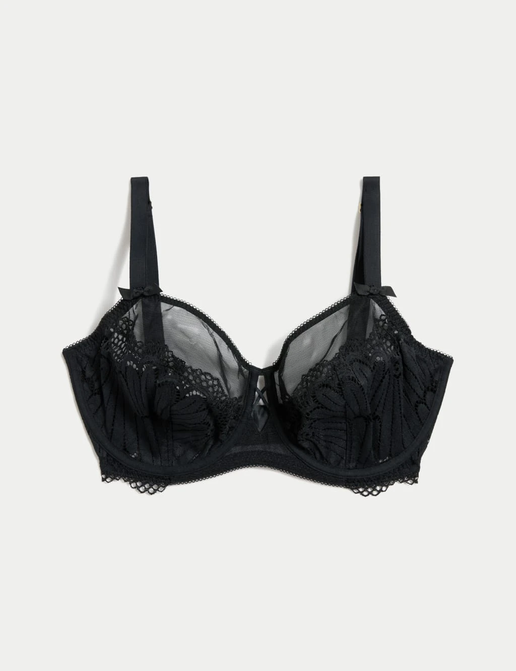 Lace and mesh combine to create this striking bra from our Boutique range. It’s underwired for support and designed with a minimising shape to reduce the bust by up to one cup size. Extra pretty touches include the bows on the straps and the elegantly scalloped trims.