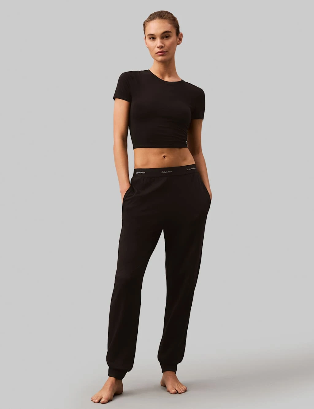 Lounge in total comfort with these cotton-rich terry fleece joggers by Calvin Klein. They’re made in a regular fit with a flattering tapered leg and cuffed hems. Pockets at the hips are perfect for storing small essentials. A signature elastic waistband gives a flexible feel and a sporty look.