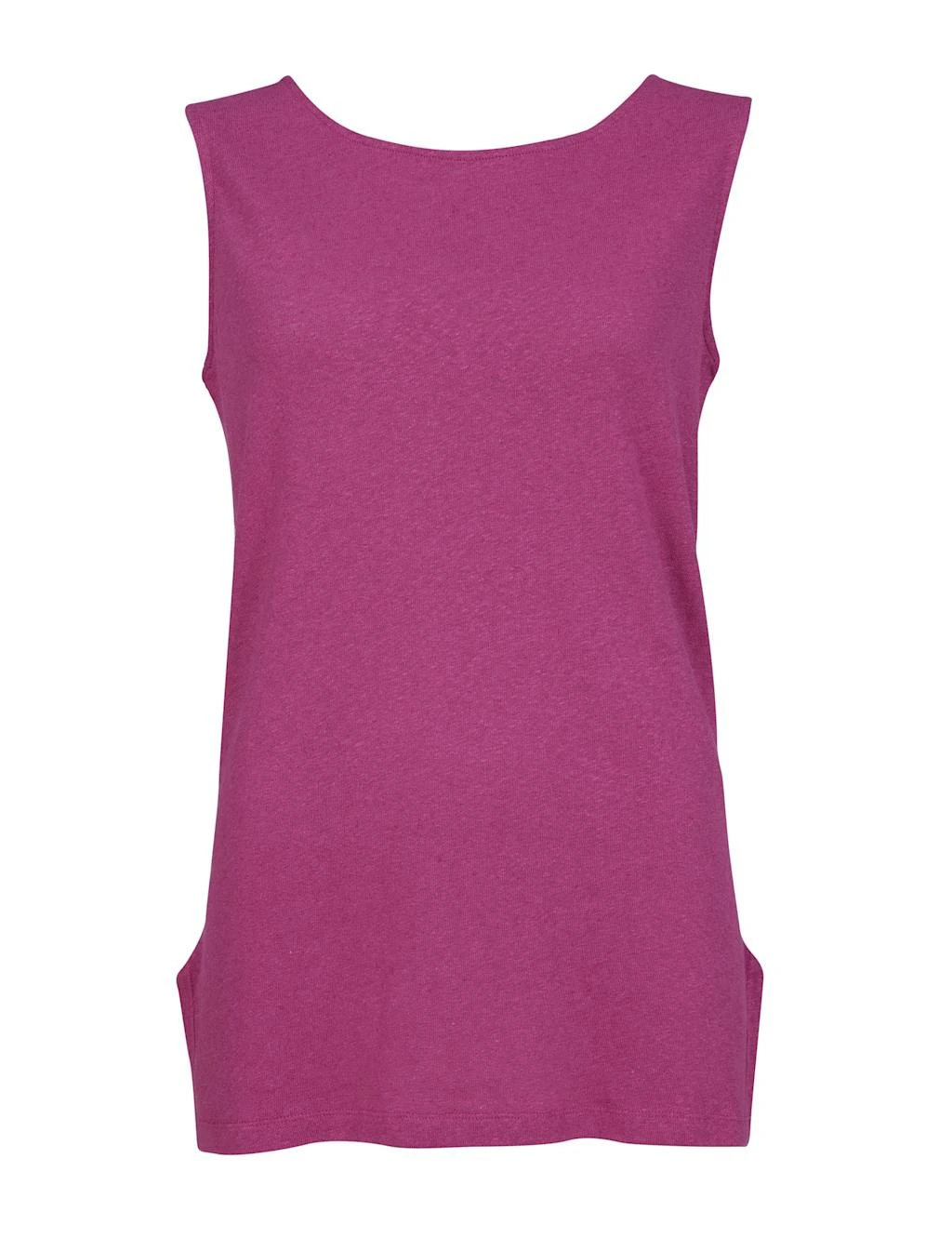 For relaxed comfort, choose this sleeveless cotton-linen tunic from Celtic & Co. It’s cut to a regular fit with side splits for a looser feel. The scoop neckline dips at the back and leads into a neat row of matching buttons.