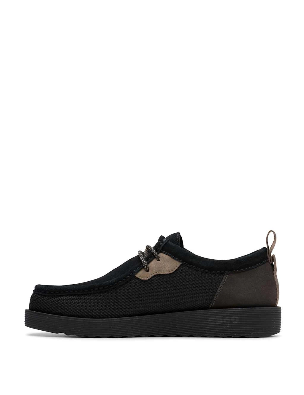 Crafted from butter-soft suede, these Wallabee trainers from Clarks are a timeless addition to your smart-casual wardrobe. The lace-up upper sits on a chunky crepe sole for a modern look. Contrast panels around the eyelets add a contemporary finishing touch.