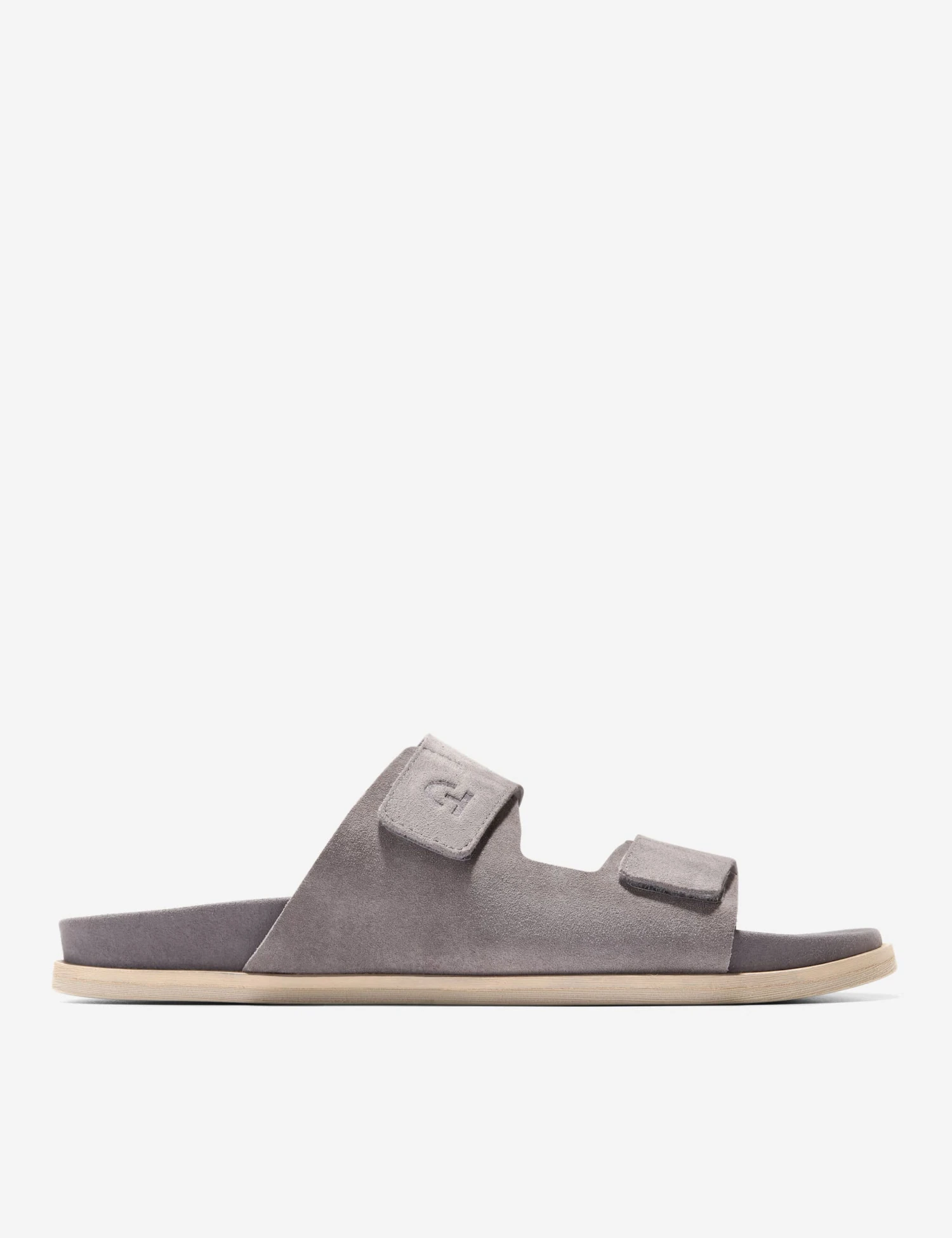 These stylish sandals from Cole Haan elevate your sunny-day ensembles. Crafted with leather uppers and footbeds, they feature a double strap design that fastens with riptape for ease of wear. The top strap is detailed with an embossed branded logo for signature flair.