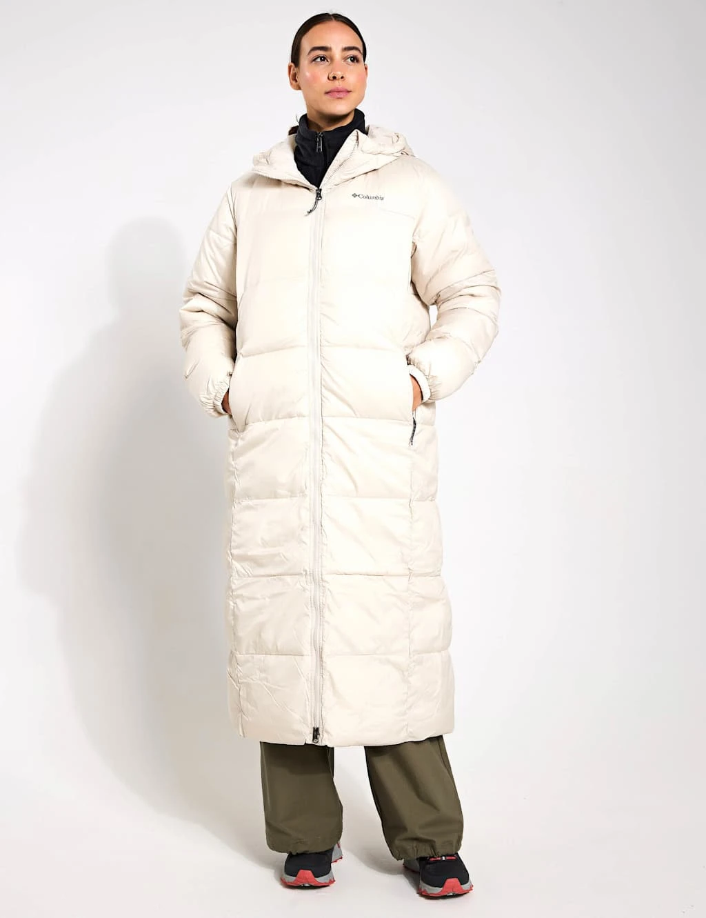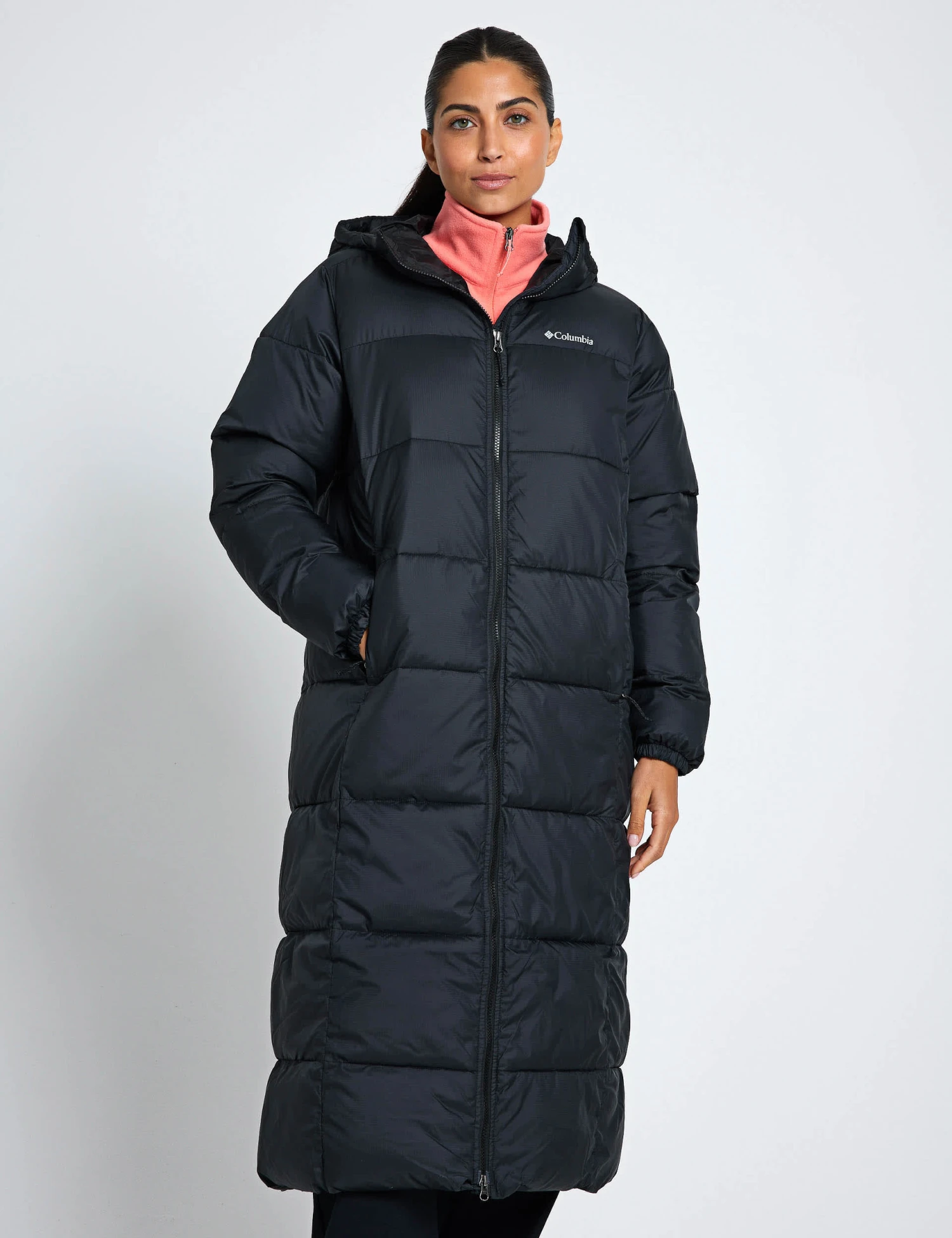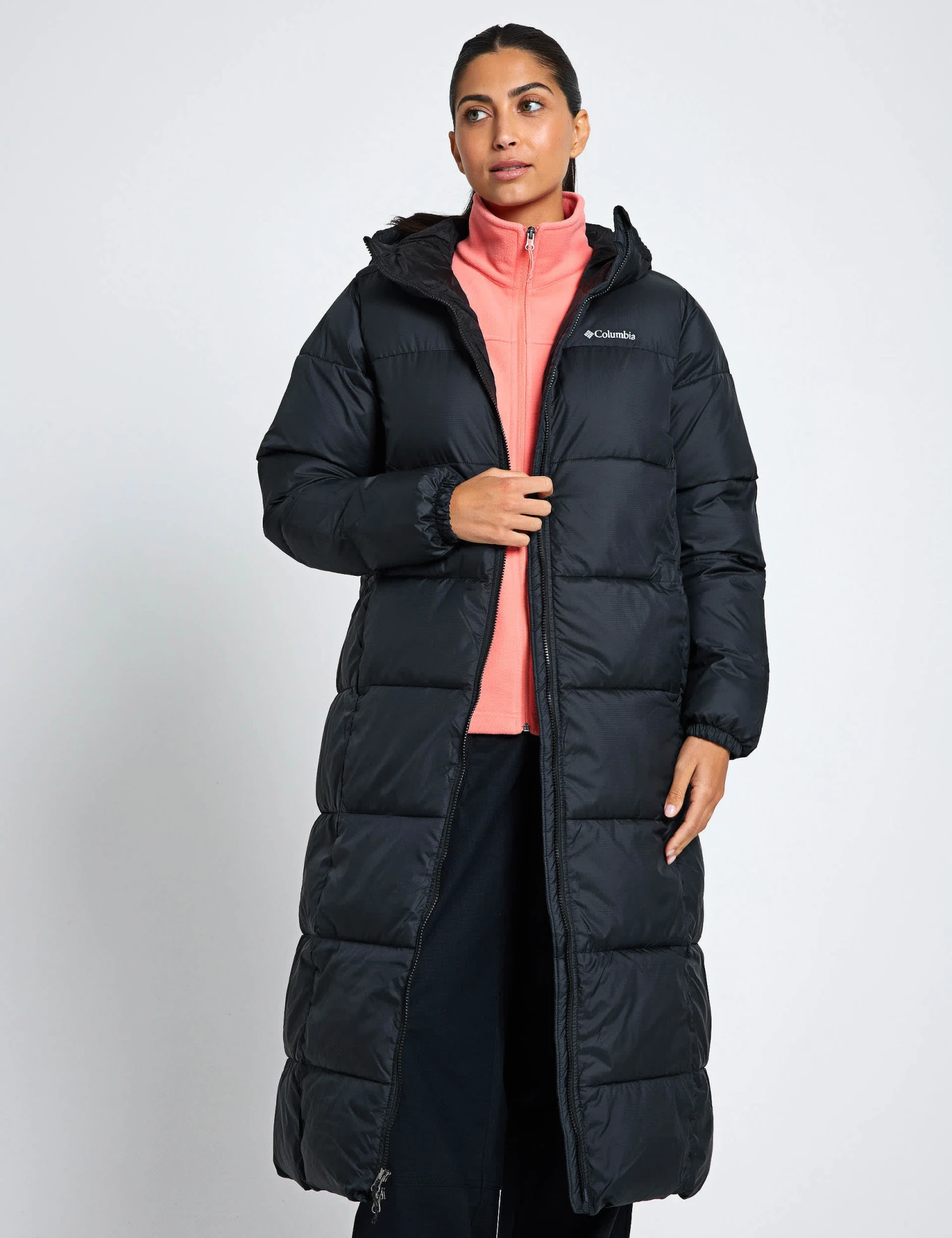 Stay warm from top to toe in this long Columbia women’s puffer jacket packed with synthetic down insulation.