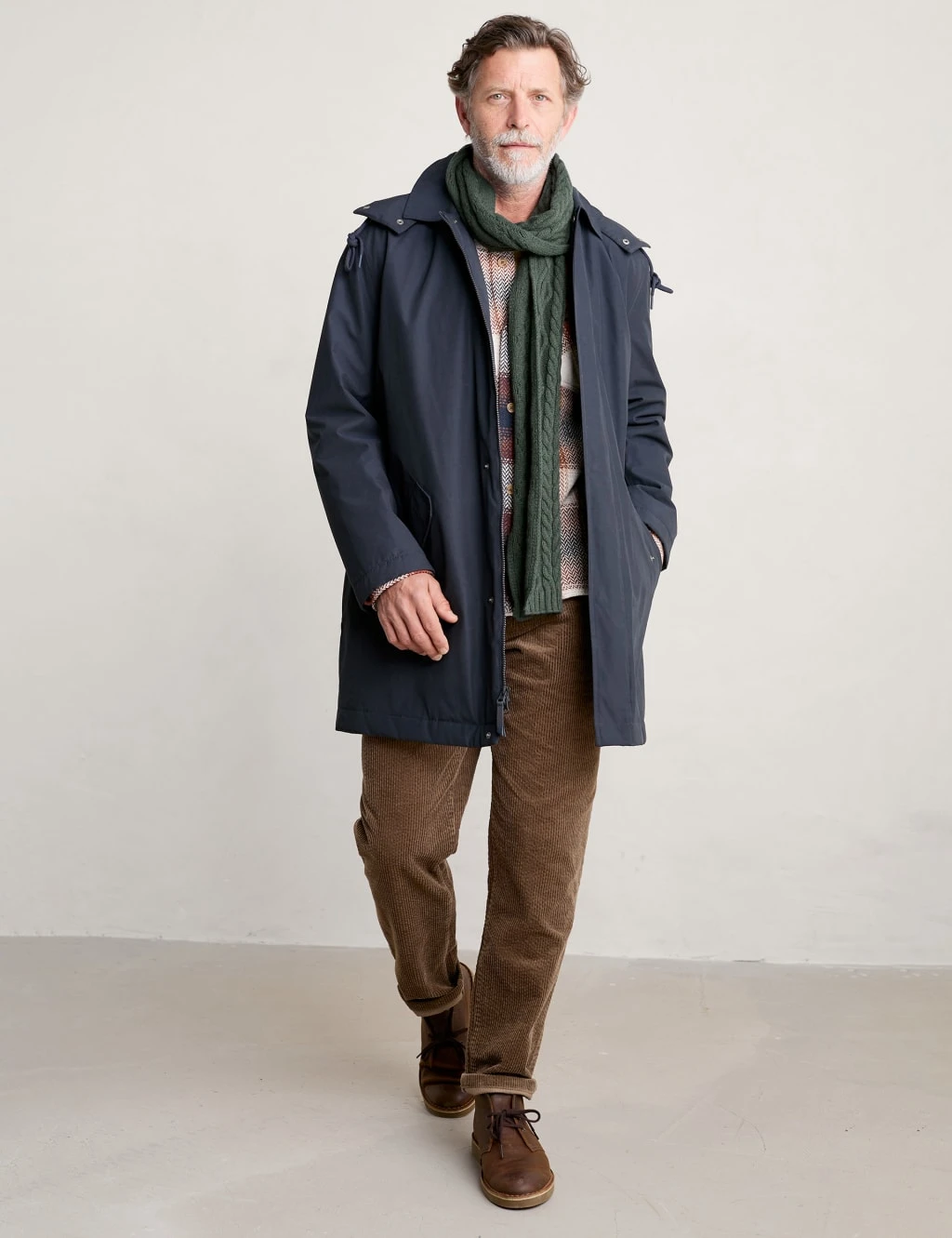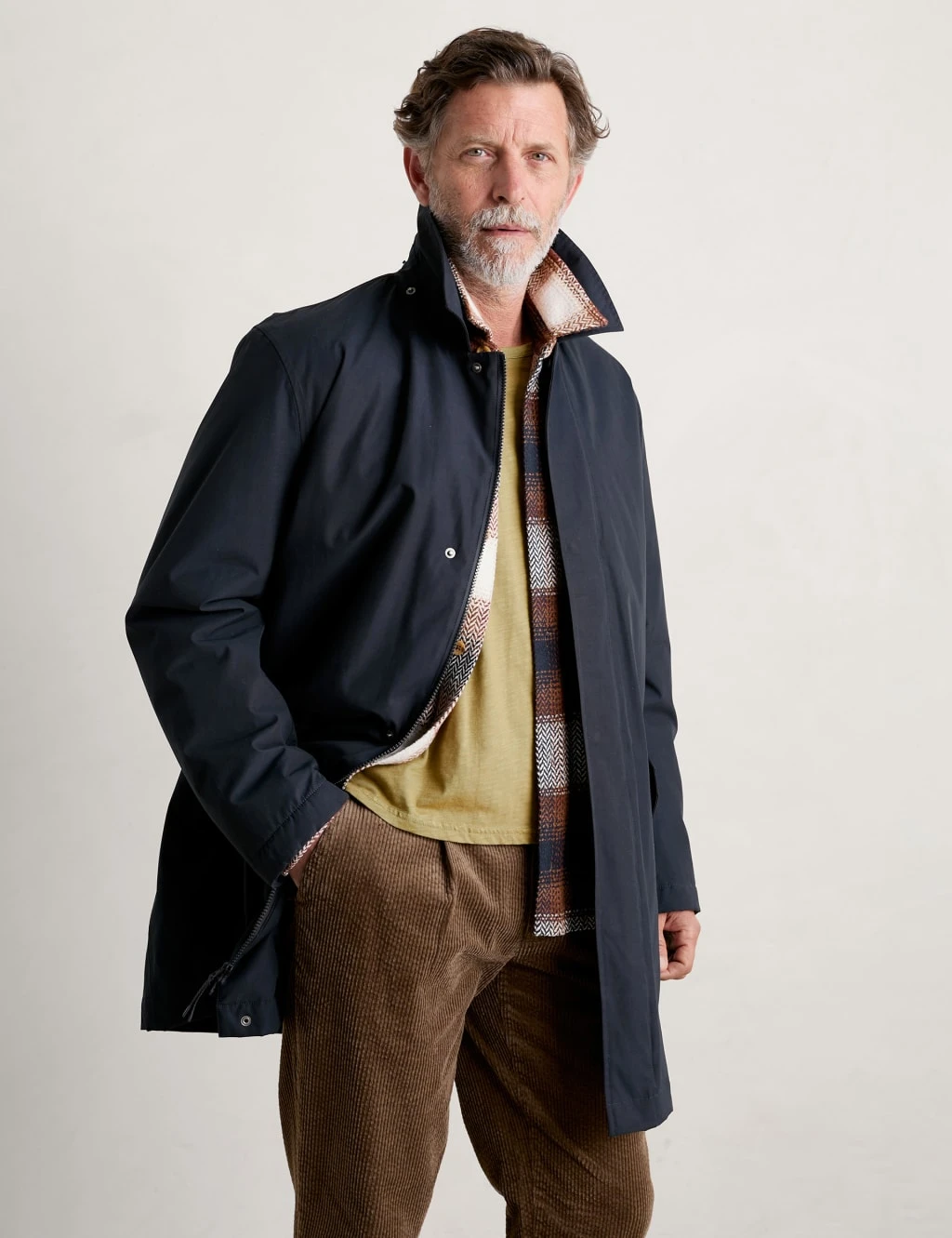 With its classic cut and waterproof finish, this cotton-blend overcoat by Seasalt Cornwall is a hero style. Designed for comfort, it’s made in a regular fit with a soft quilted lining and articulated sleeves for flexible movement. It has a smart collared neck plus a fully removable hood with knotted drawcord detailing to help protect you from the elements. This piece has generous pockets for your essentials and fastens with popper and zip closures.