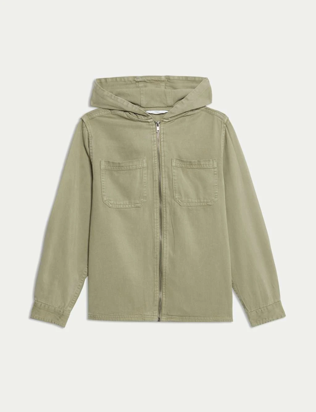 This plain canvas shacket takes traditional shirt styling and combines it with the protectiveness of a lightweight jacket. It’s designed in a regular fit, with a zip-through fastening and snug hood. Two patch pockets on the chest add a practical finishing touch.