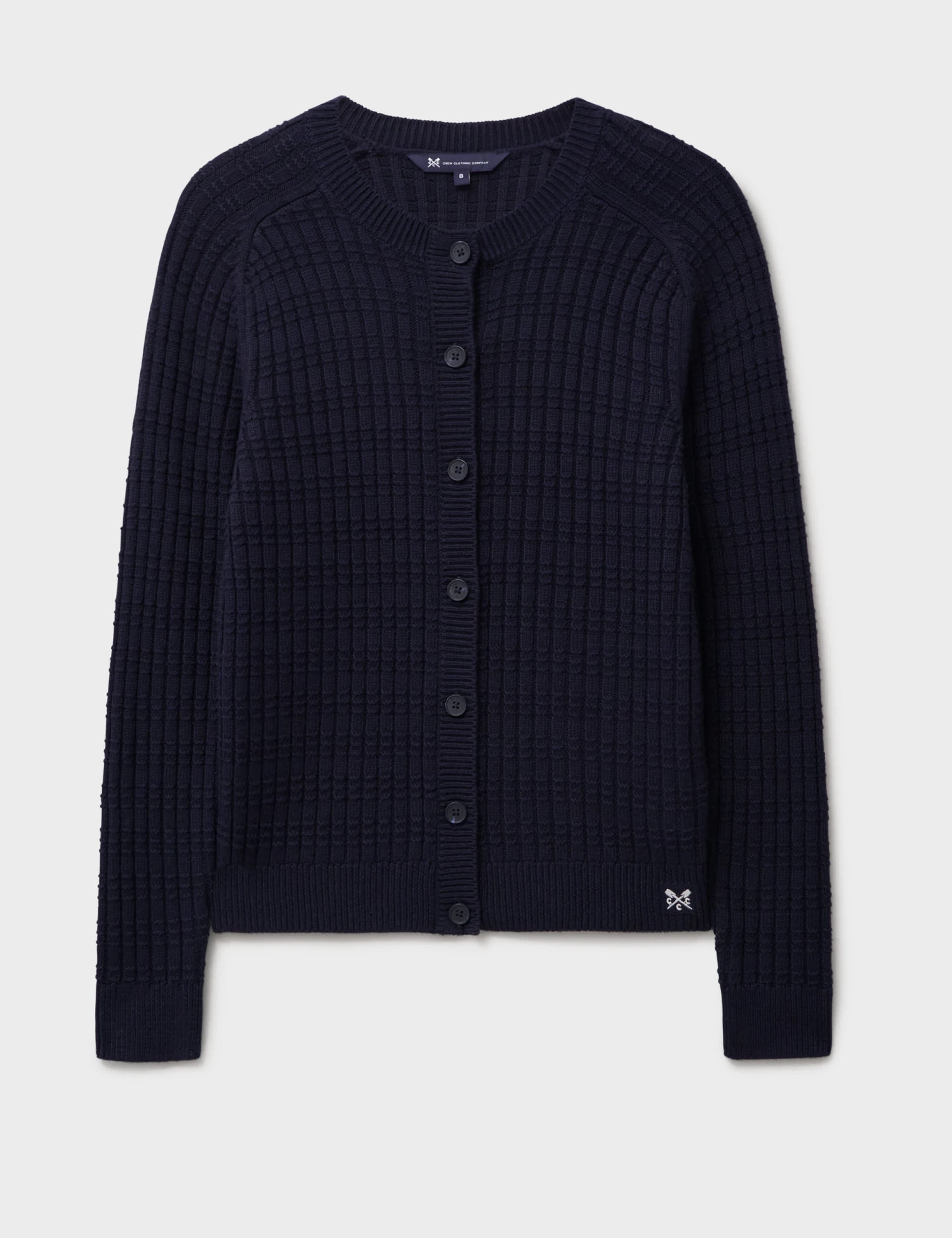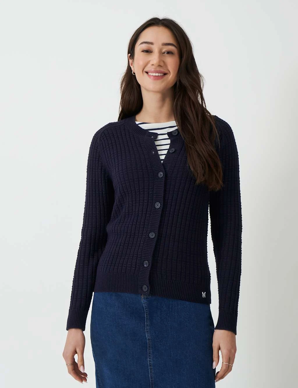 This cotton-blend cardigan by Crew Clothing is a versatile piece for your casual wardrobe. It’s knitted in a comfy regular fit, with neat button fastenings and a timeless crew neckline. The textured design adds a cosy finish.