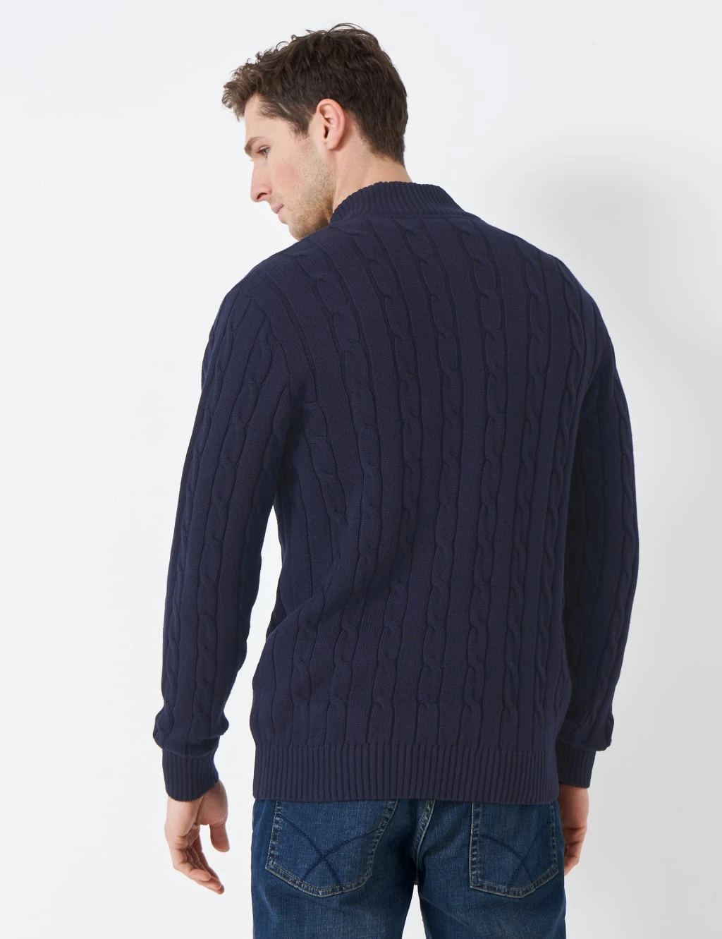 When the weather turns cooler, this cotton-blend jumper from Crew Clothing makes a smart extra layer. It’s knitted in a cable pattern for a classic textured look and features a half zip neckline so you can wear it your way. The brand’s distinctive crossed oars badge is embroidered on the chest and ribbed trims at the collar, cuffs and hem ensure a neat finish.