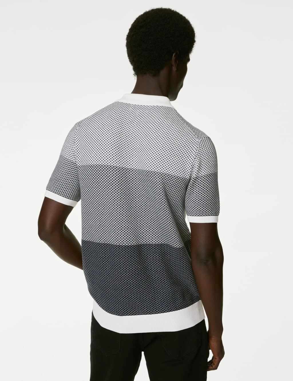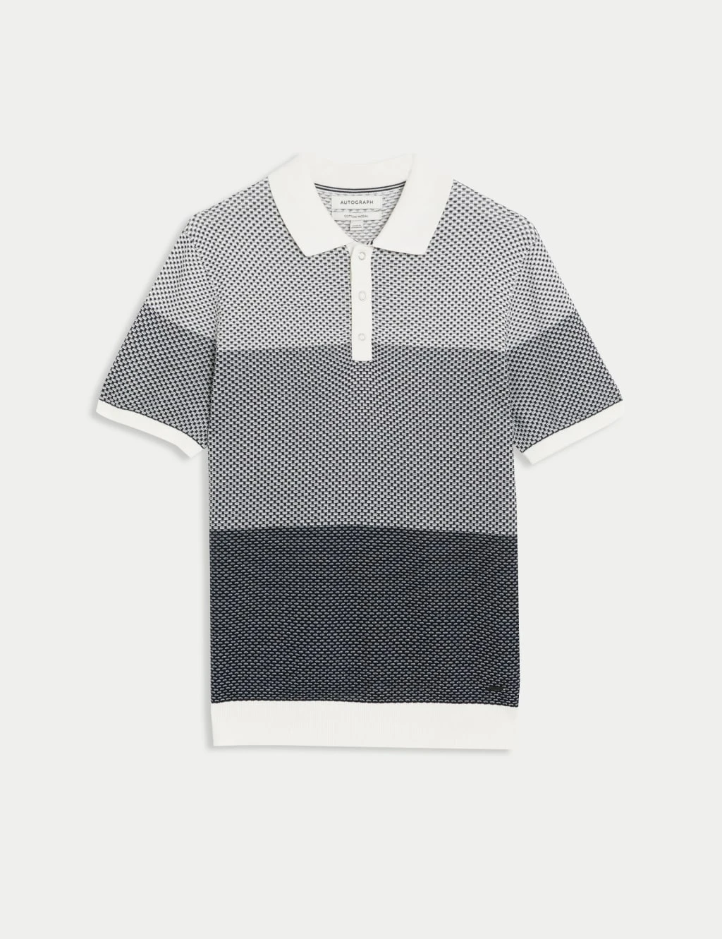 Graduated block stripes and a contrasting collar make this cotton-modal Autograph knitted polo shirt a stylish addition to your wardrobe. The geometric pattern, monostitch tipping and ribbed trims give this subtly textured piece a unique look and feel.