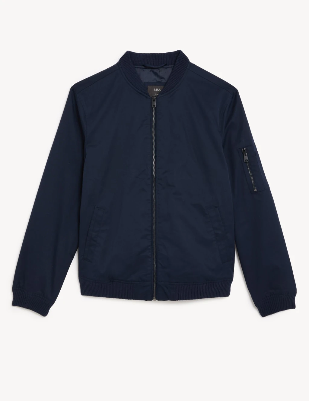 This cool cotton-rich bomber jacket will quickly become a casualwear favourite. It’s made to a comfy regular fit. The stylish sleeve zip pocket keeps your essentials safe, while the side-entry pockets are perfect for warming hands. A baseball neck gives this piece a sporty look.