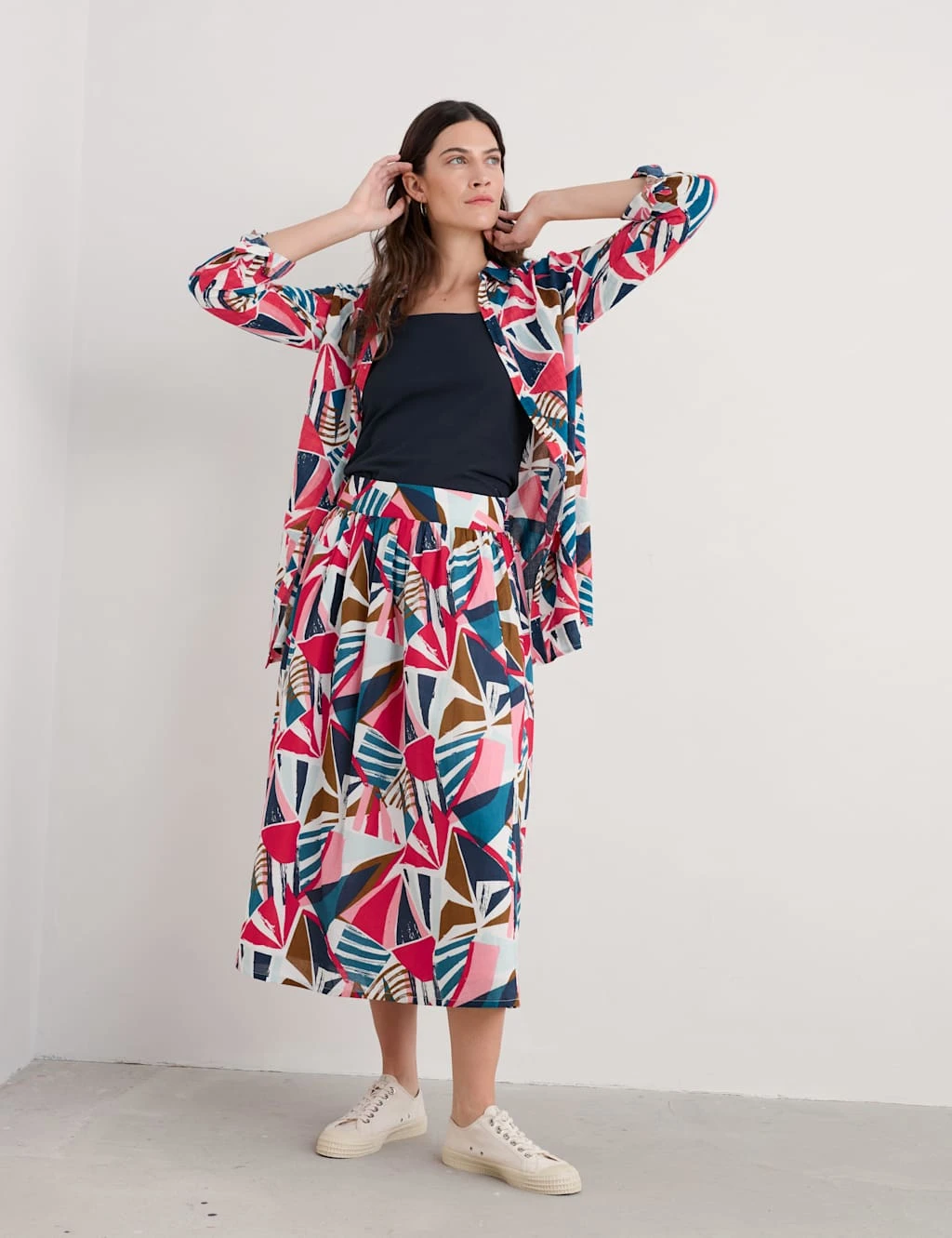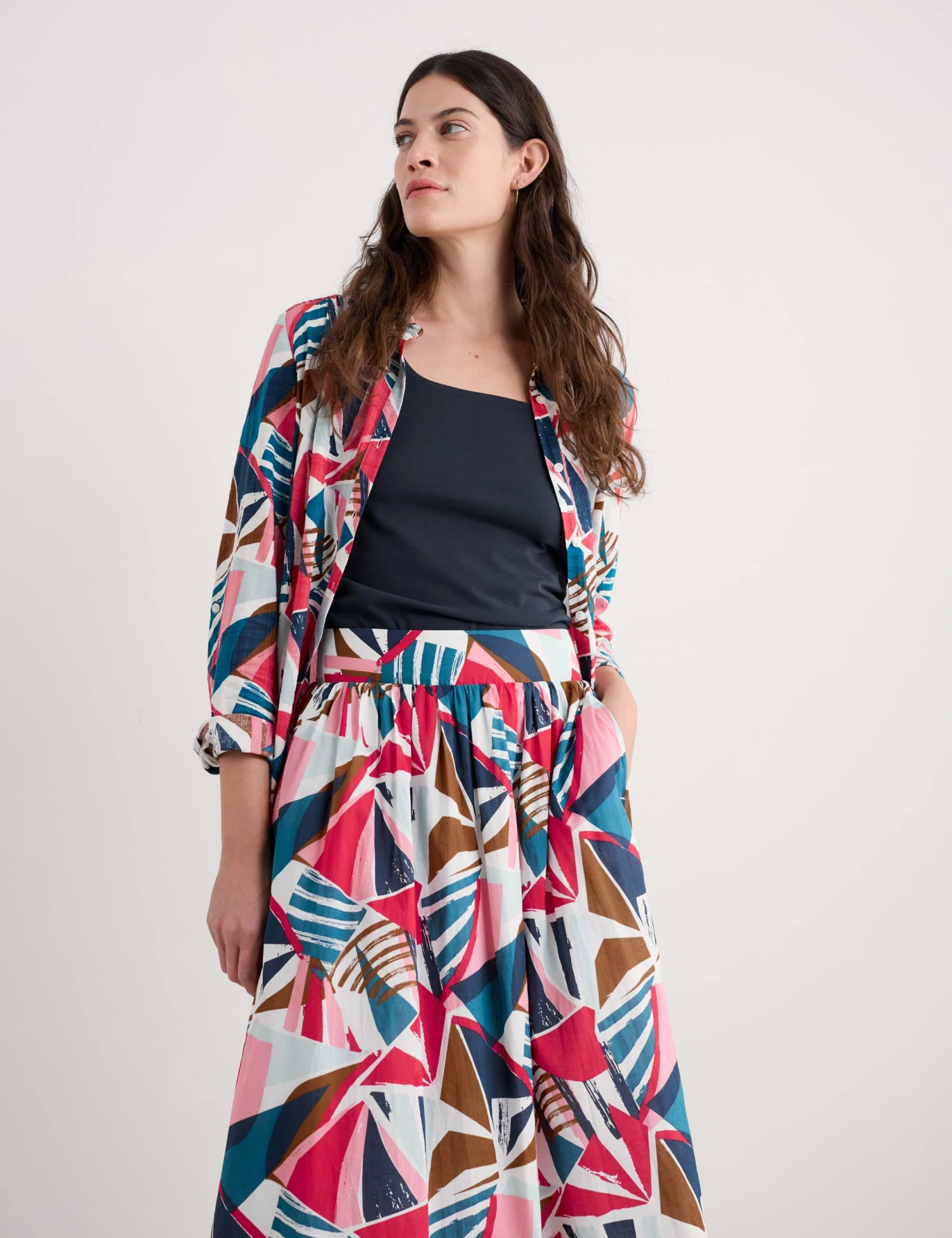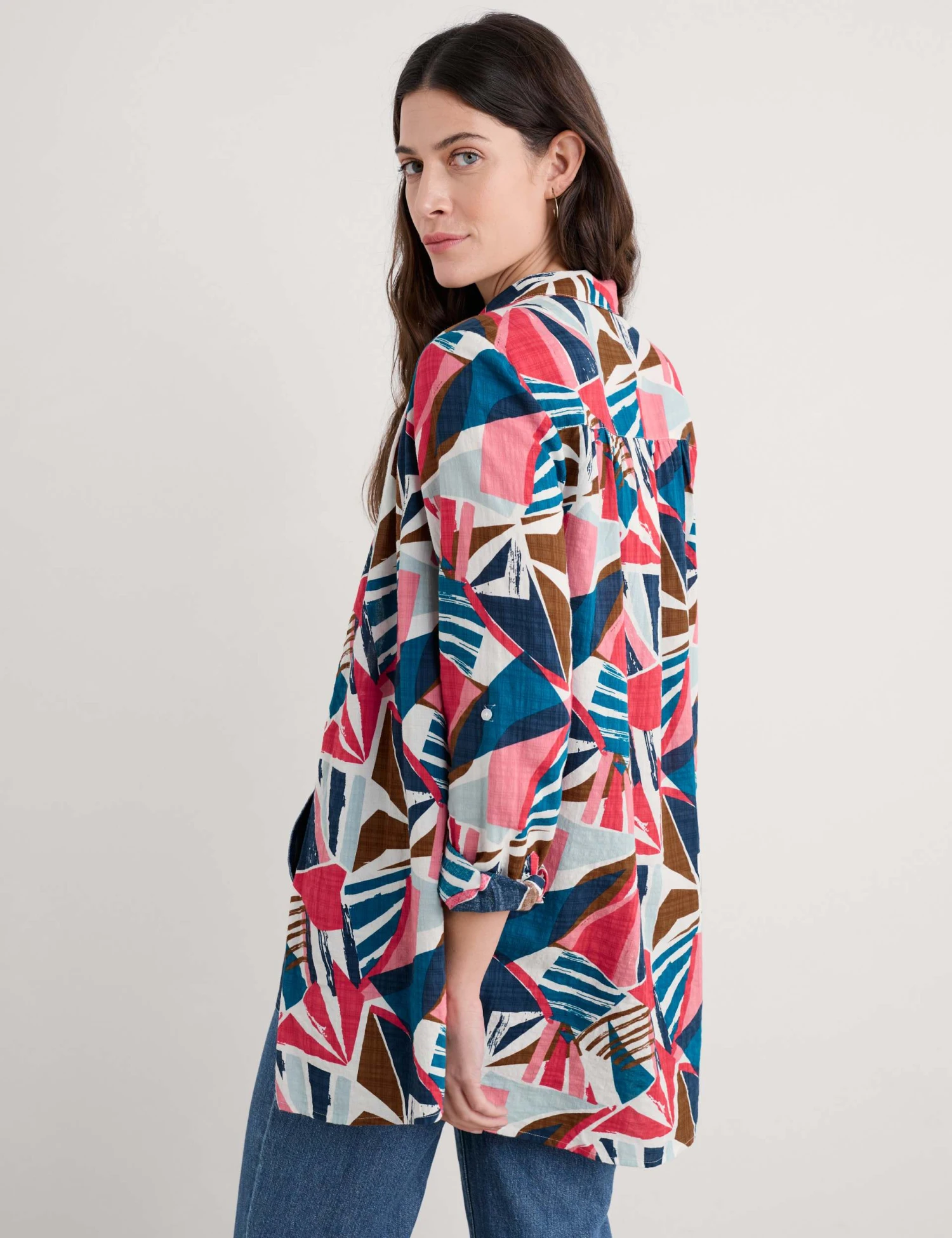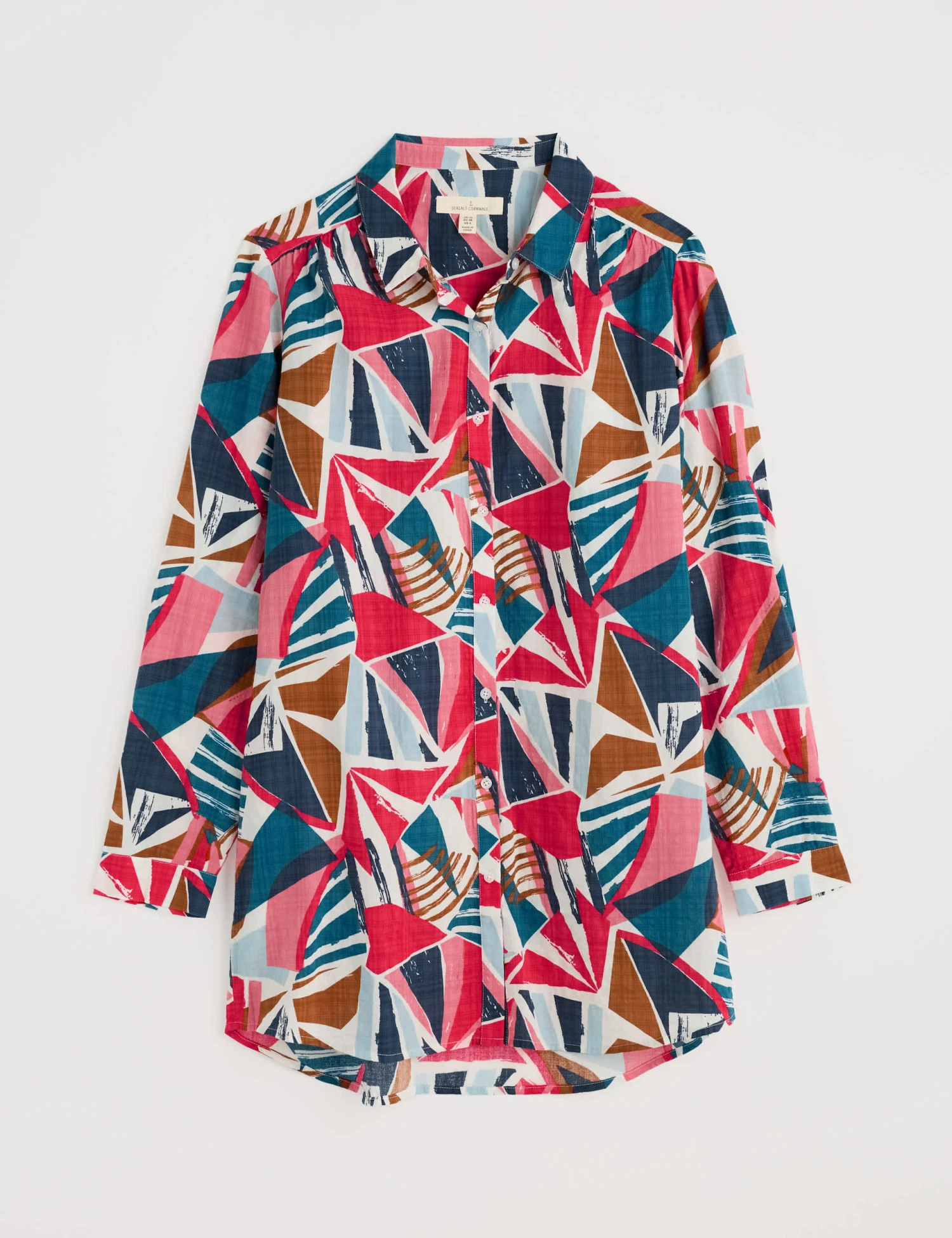 This cotton-rich shirt by Seasalt Cornwall is a stylish choice for work or weekends. It’s cut in a comfortable regular fit, with a flattering rounded hemline and gathering at the shoulders for a looser feel. Smart details include a neat buttoned front, a collared neckline and cuffed long sleeves. A striking geometric print brings a playful pop of colour to the look.