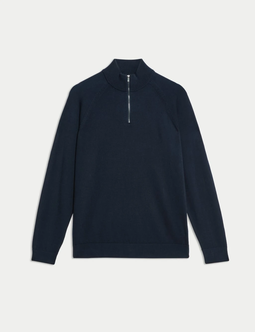 This cotton-rich jumper makes a great layering piece for the cooler months. It features a half-zip fastening at the neck for easy on-off. Ribbed trims at the hem and cuffs give this casual piece a neat finish. M&S Collection: easy-to-wear wardrobe staples that combine classic and contemporary styles.