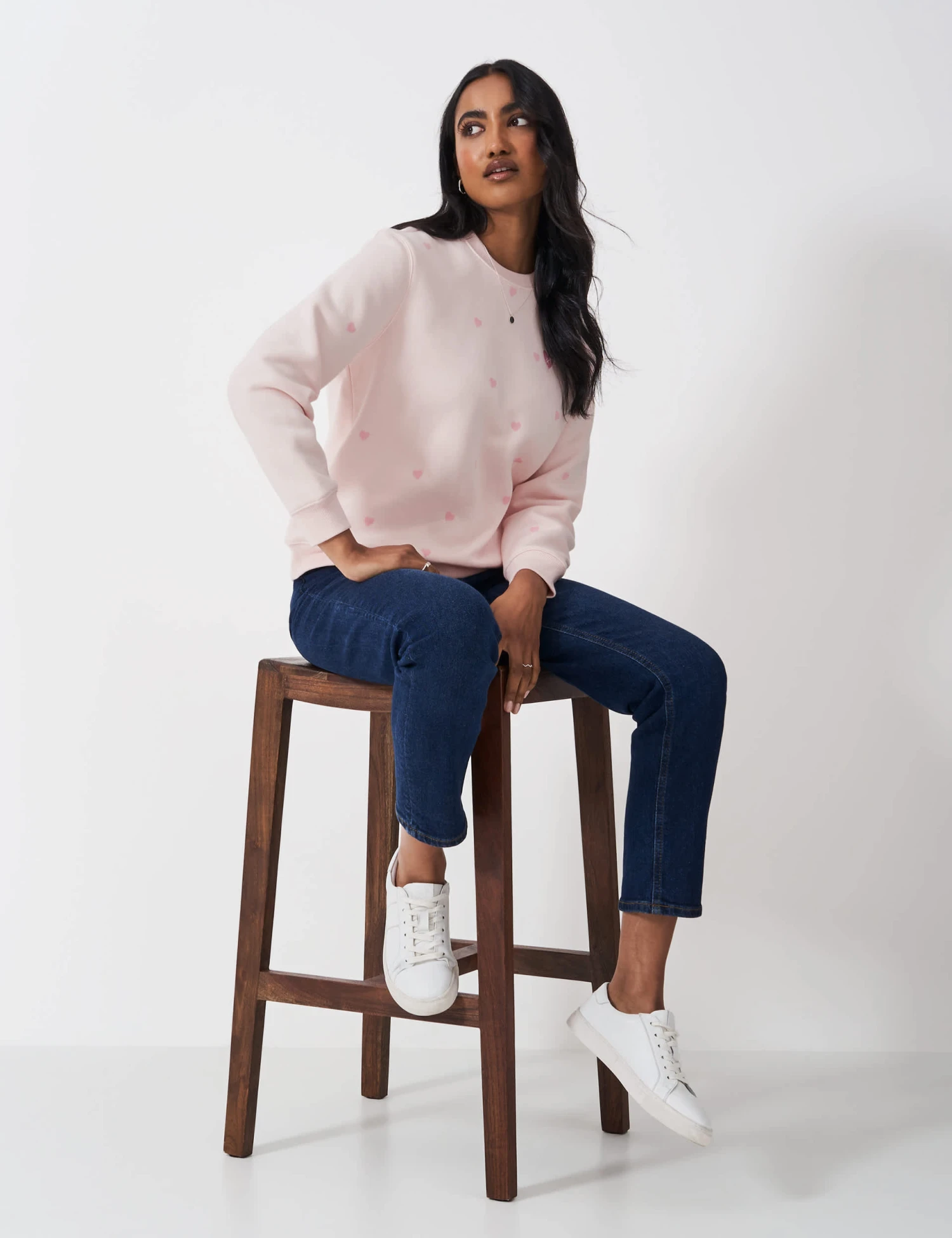 This Crew Clothing sweatshirt is made from super-soft fabric for a luxurious feel. It’s cut in a regular fit, with a neat crew neck and ribbed trims. For a feminine touch, this comfy piece is decorated with a tonal heart print and signed off with the brand’s logo inside one on the chest.