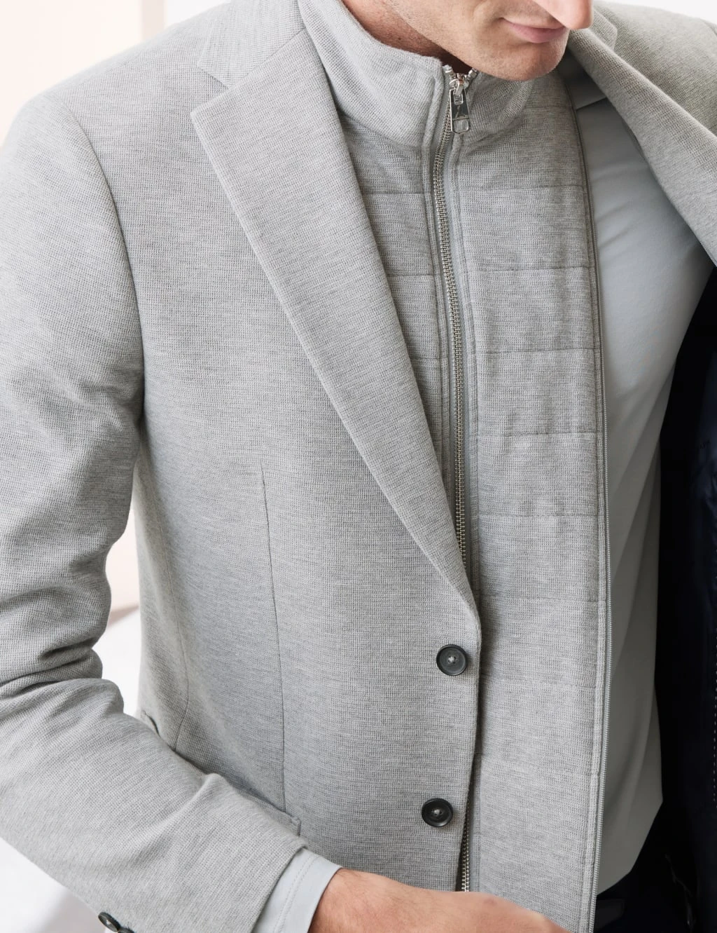 This cotton-rich knitted blazer from our Autograph collection will make a versatile addition to your smart-casual wardrobe. It’s made to a sleek tailored fit, with a single-breasted front featuring a neat two-button fastening and classic patch pockets. The funnel neck gilet insert gives this fully lined piece a contemporary twist. Autograph: premium investment pieces featuring contemporary cuts and refined finishing touches.