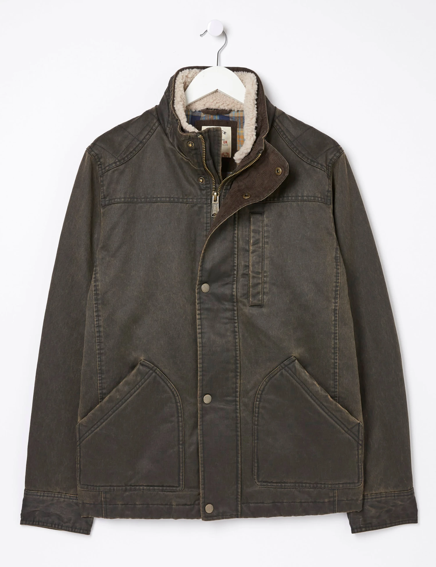 Add a rugged look to your wardrobe with this cotton-rich, padded utility jacket from FatFace. It features a secure zip and popper fastening to keep out chilly draughts. The borg-lined cord collar adds extra cosiness, while the pockets provide a practical touch. Branded detailing on the back neck gives this piece a signature finish.