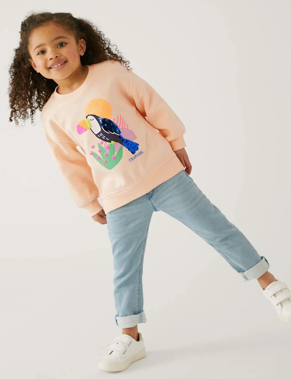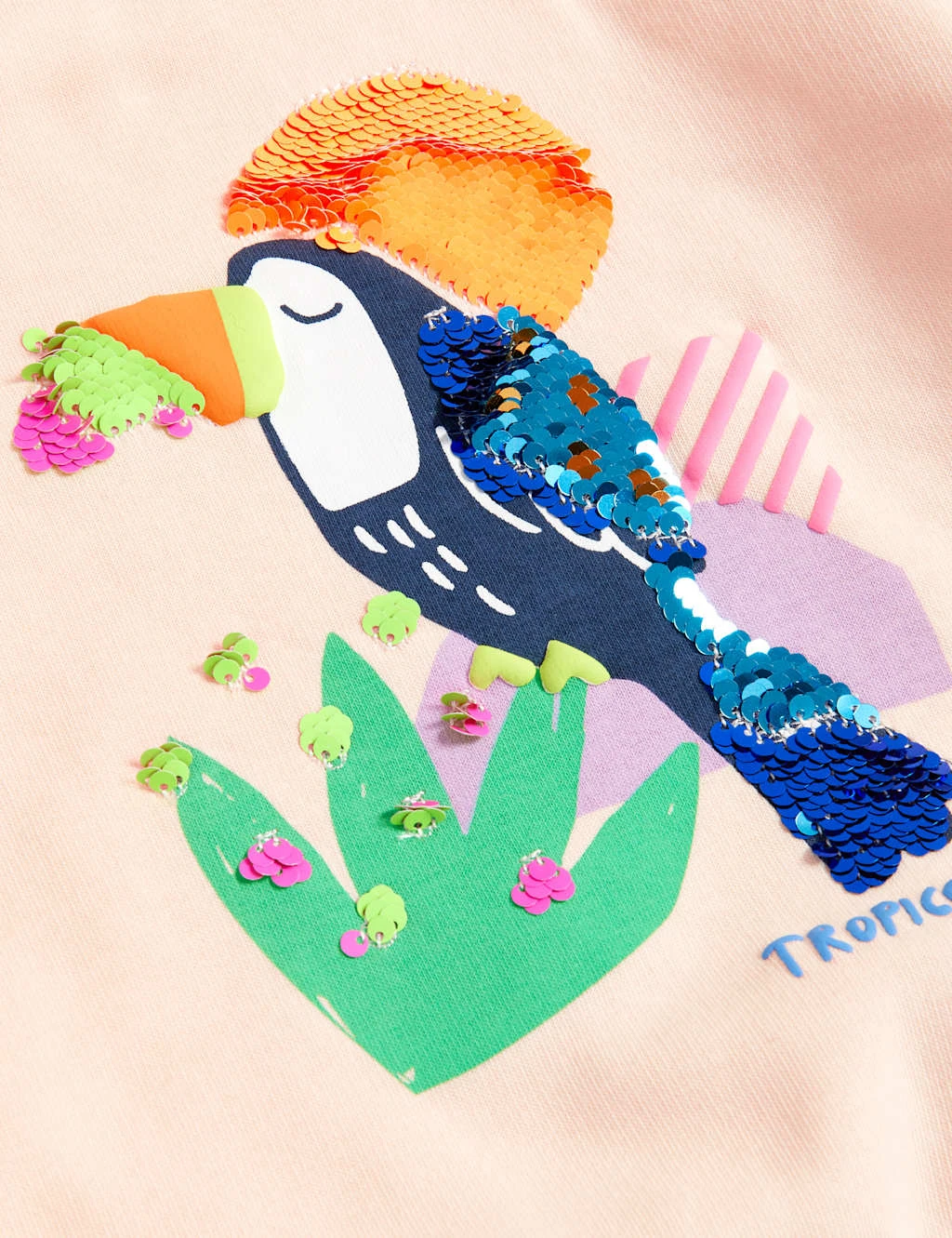 Add a touch of sparkle to their casual style with this cotton-rich sweatshirt. Designed in a regular fit, with a comfy round neck and long sleeves. On the front, a bird motif with sequins and a ‘Tropicool’ slogan bring a vibrant pop.