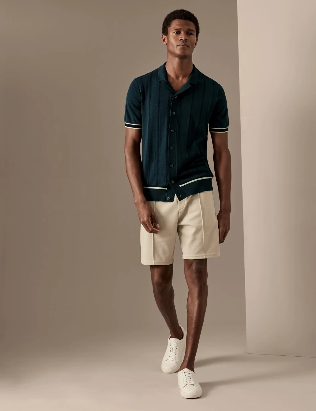 Effortlessly uplift your smart-casual essentials with this cotton-rich knitted polo shirt from the Autograph collection. The curves of the on-trend revere collar offset the straight line of contrasting buttons below and the striped design is complemented by tipping at the ribbed cuffs. Branded trims add an understated finishing touch.