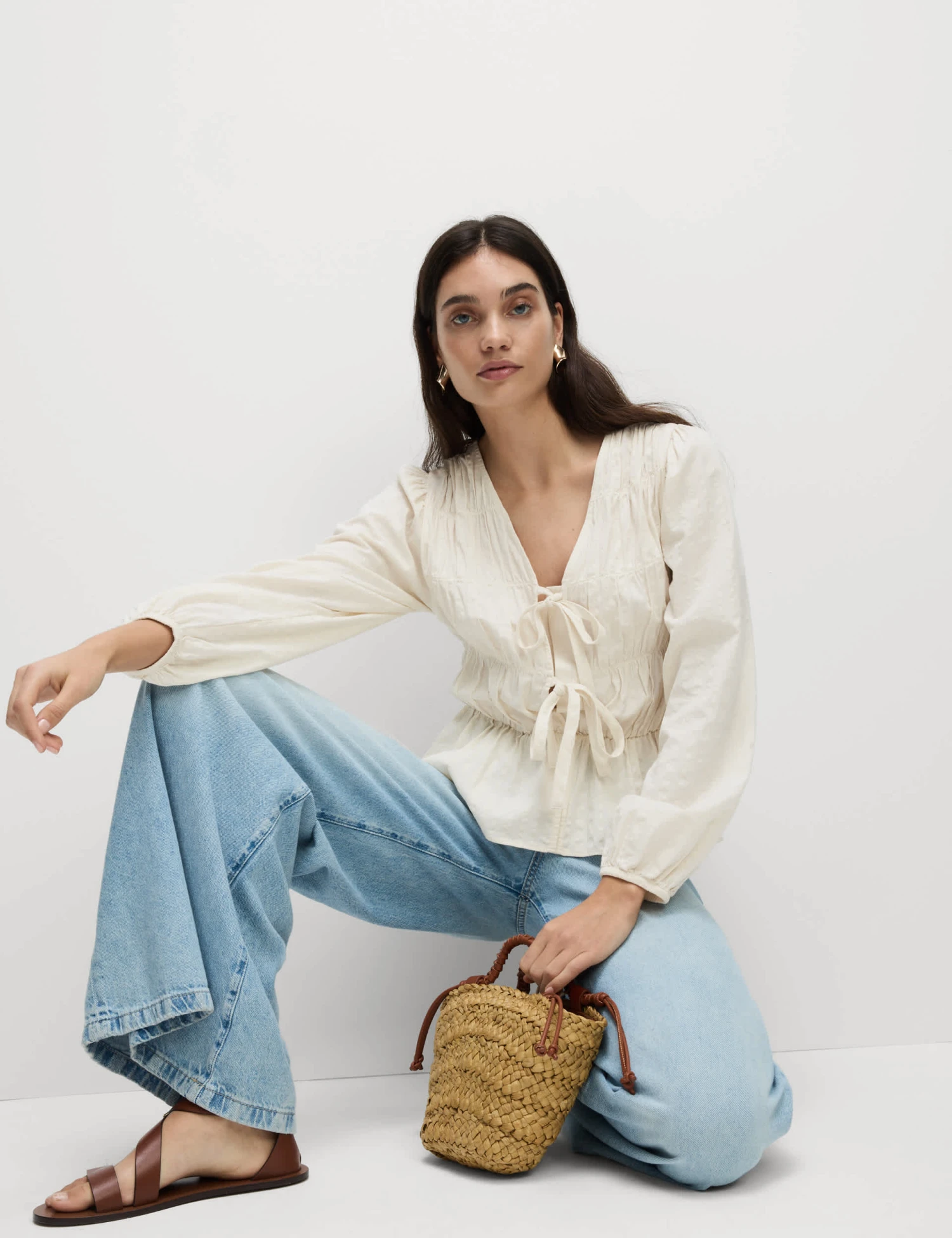 Add effortless charm to your wardrobe with this cotton-rich blouse. Designed in a regular fit, it features a flattering v-neckline for a timeless look. The tie fastening at the front adds a stylish, refined touch. M&S Collection: easy-to-wear wardrobe staples that combine classic and contemporary styles.