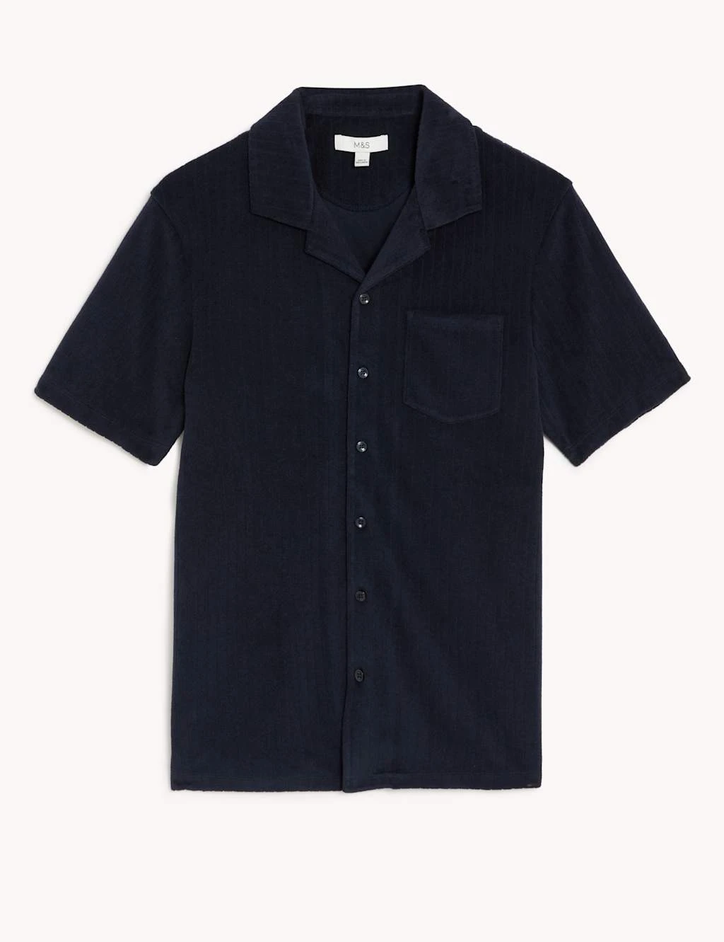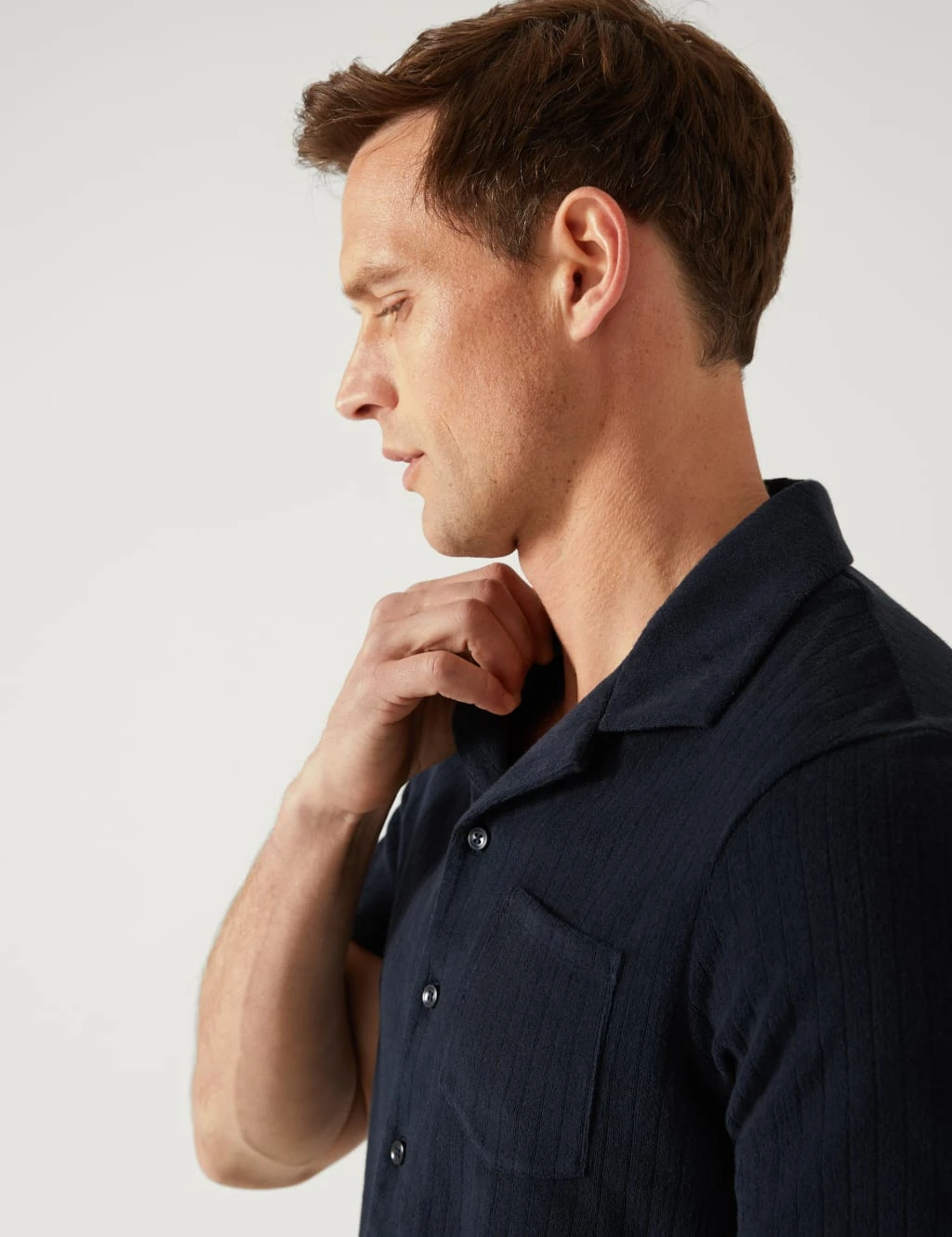 Crafted from cotton-rich towelling fabric, this plush polo shirt has a contemporary feel. It’s made in a comfy regular fit, with a refined revere collar and button-through closure. A chest pocket provides a practical finish.