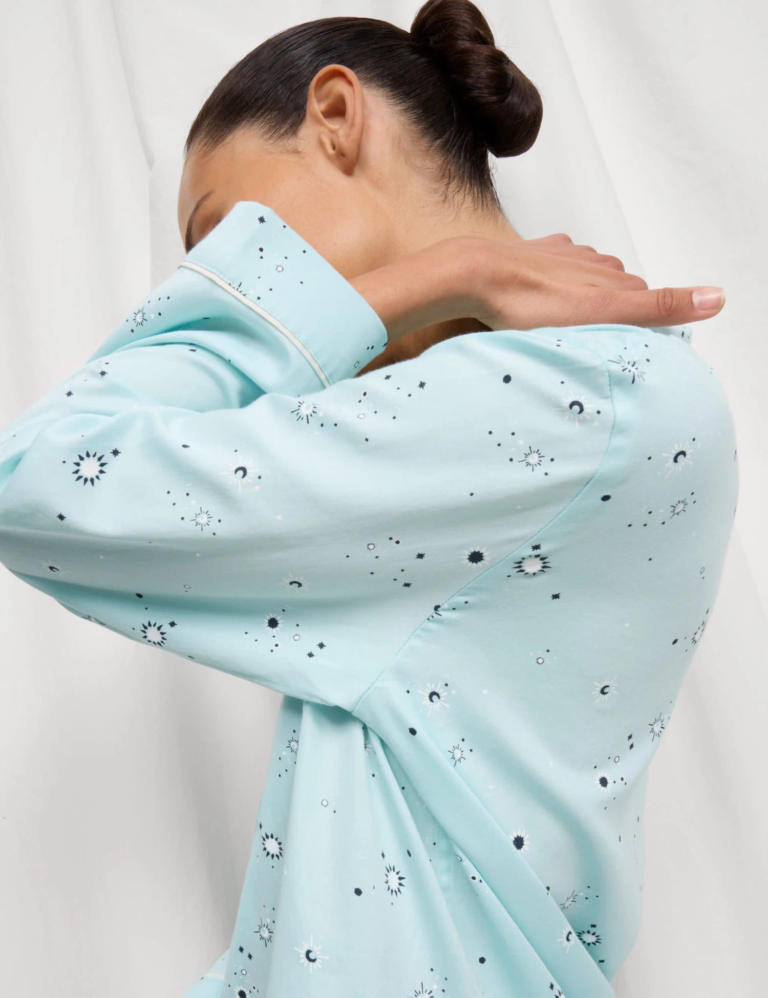 This pure cotton sateen nightshirt has an Eid-inspired moon and star print. The regular fit style has long sleeves, a collared neck and button fastenings. It’s complete with a curved hem, plus piping on the cuffs and patch pocket. M&S Collection: versatile styles in modern shapes with unique and playful details.