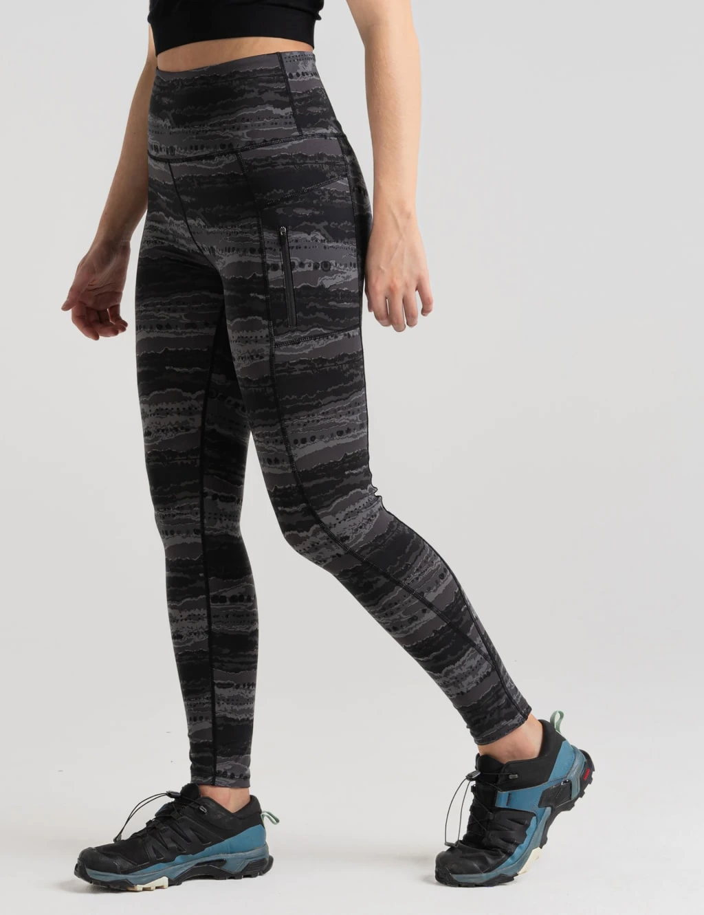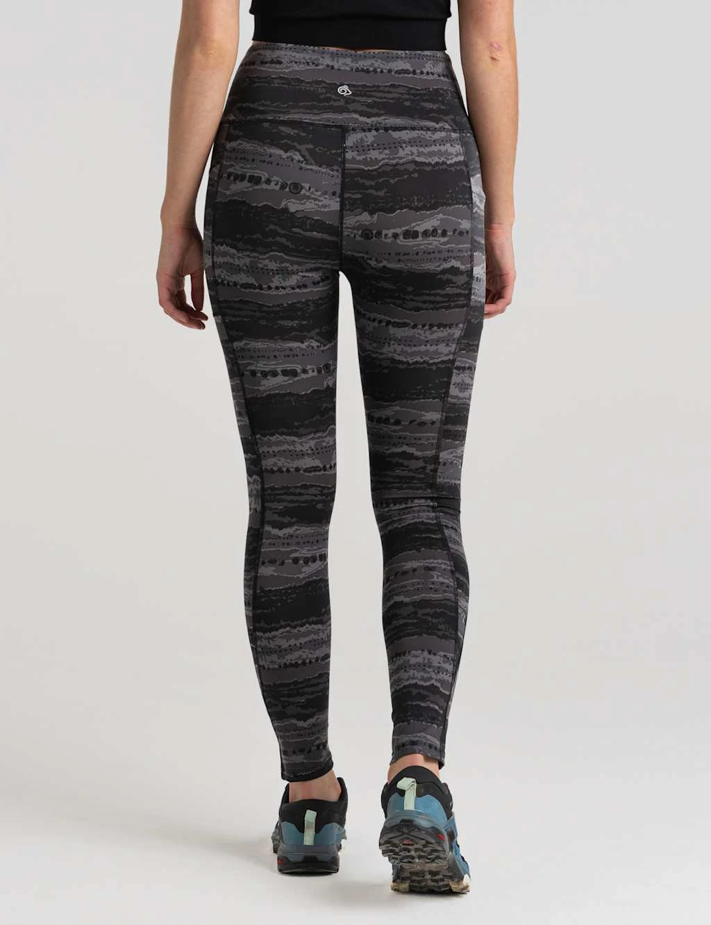 Bring extra flair to your workout with these Kiwi Pro leggings from Craghoppers. They’re cut in an on-trend tapered fit, with an elasticated mid-rise waistband for comfortable movement. A bold print on water-resistant recycled fabric gives them a standout look, while discreet side pockets provide handy storage for your essentials.