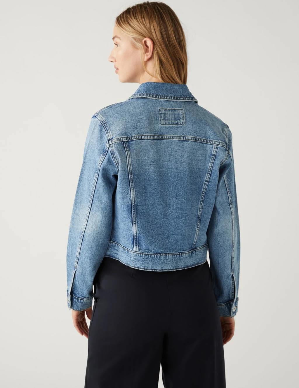 Laid-back plans call for this collared cotton-rich denim jacket, which is perfect for layering over dresses thanks to its cropped length. It’s cut in a regular fit, with added stretch for easy movement. The front features yoke detailing and two utilitarian-style patch pockets for your belongings. Silver buttons and a casual wash give an authentic look. It’s also available in another timeless colour.
