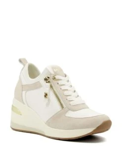 Lend a sporty touch to your ensembles with these panelled trainers by Dune London. The upper combines smooth faux-leather panels in complementary colours, with a convenient lace-up fastening. A contrast collar and outsole add premium detail.