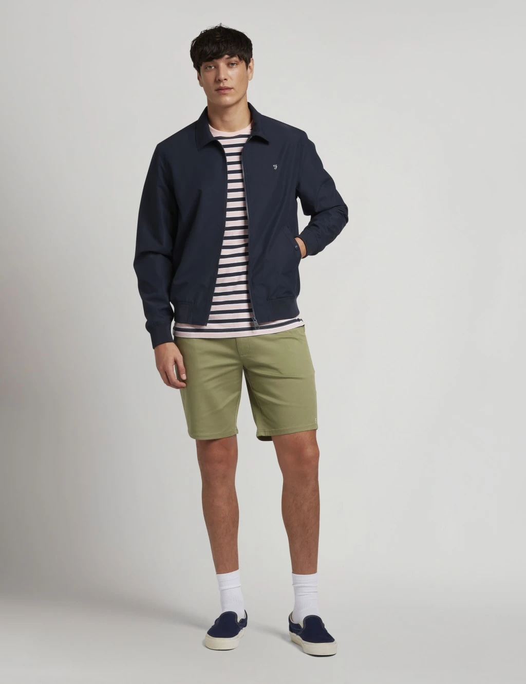 Keep showers at bay with this water-repellant bomber jacket by Farah. This blouson-style piece is designed in an easy regular fit, with a zip-up front and a smart collared neck. Ribbed trims and side pockets add neat detail, while an embroidered logo on the chest delivers an authentic finish.