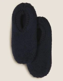 Ease your feet into these fleece slipper socks after a long day. Designed with a ribbed cuff for a snug and secure fit, with plenty of grip on the sole.