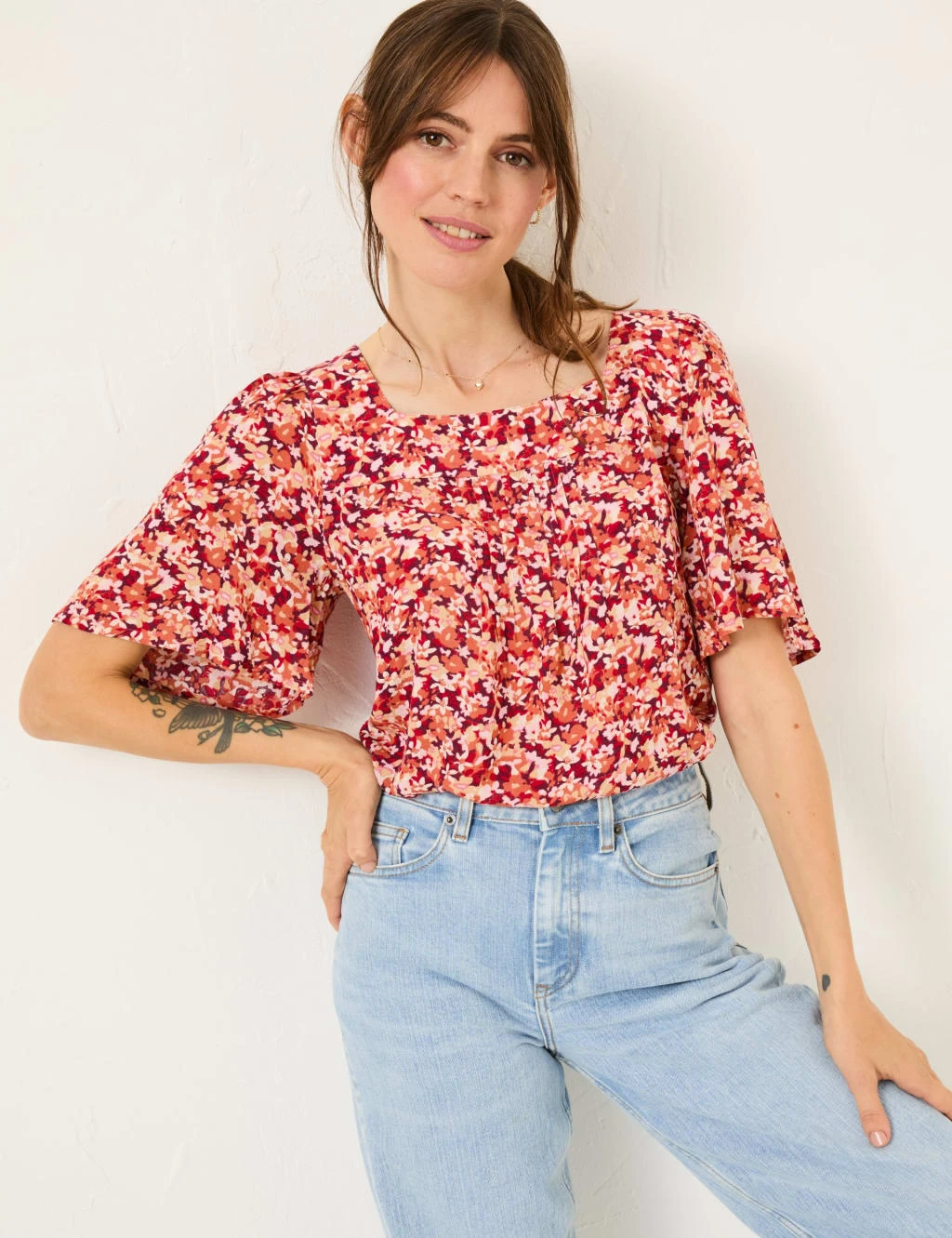This lightweight blouse from FatFace is a versatile choice for smart-casual occasions. It’s cut in a comfy regular fit, with an elegant square neckline. A pretty floral print ensures a feminine feel, while the wide short sleeves create a floaty finish.