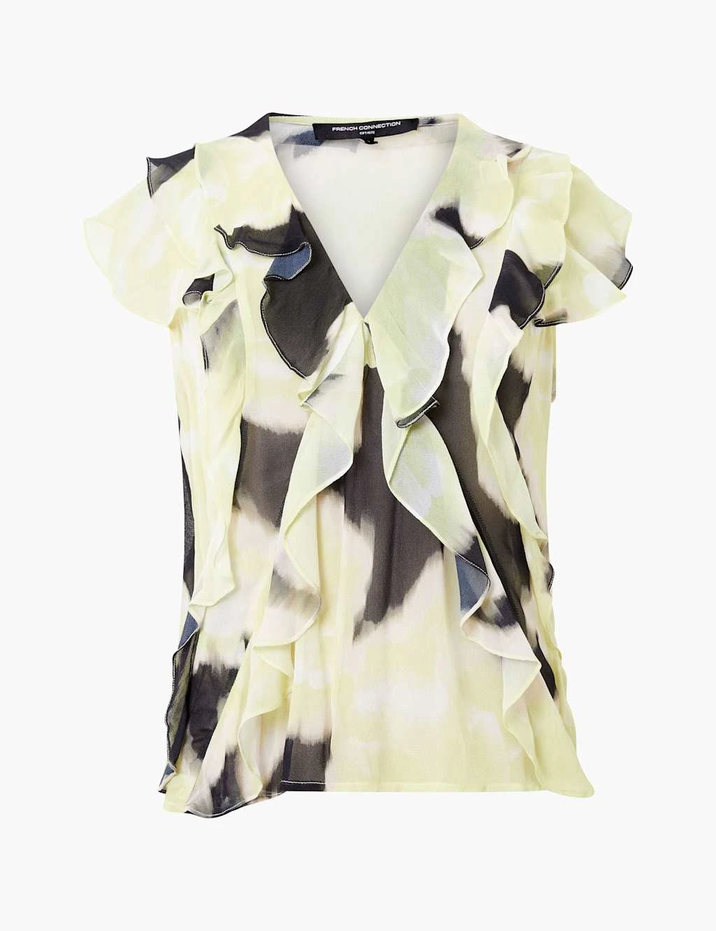 This lightweight chiffon top from French Connection is an effortlessly elegant piece. It’s designed in a regular fit, with a feminine v-neckline and short cap sleeves. Ruffles cascade from shoulder to hem for flowing movement, while the all-over abstract print on the semi-sheer fabric adds a statement final flourish.