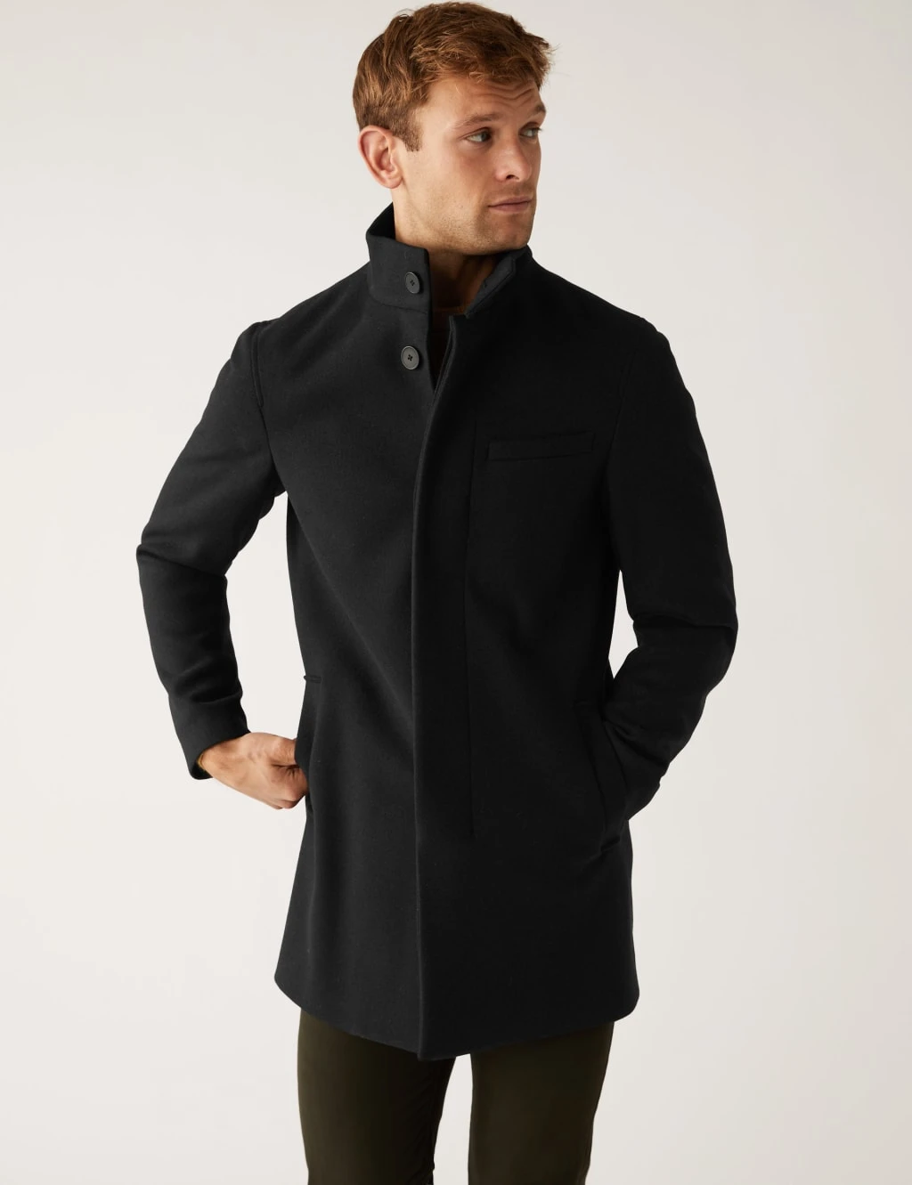This charming overcoat perfectly complements your favourite smart and casual outfits. Cut to a sharp tailored fit, it has long sleeves for warmth and an on-trend funnel neck. This full-length piece features classic button fastenings and is finished with three handy exterior pockets. It’s lined for comfort.
