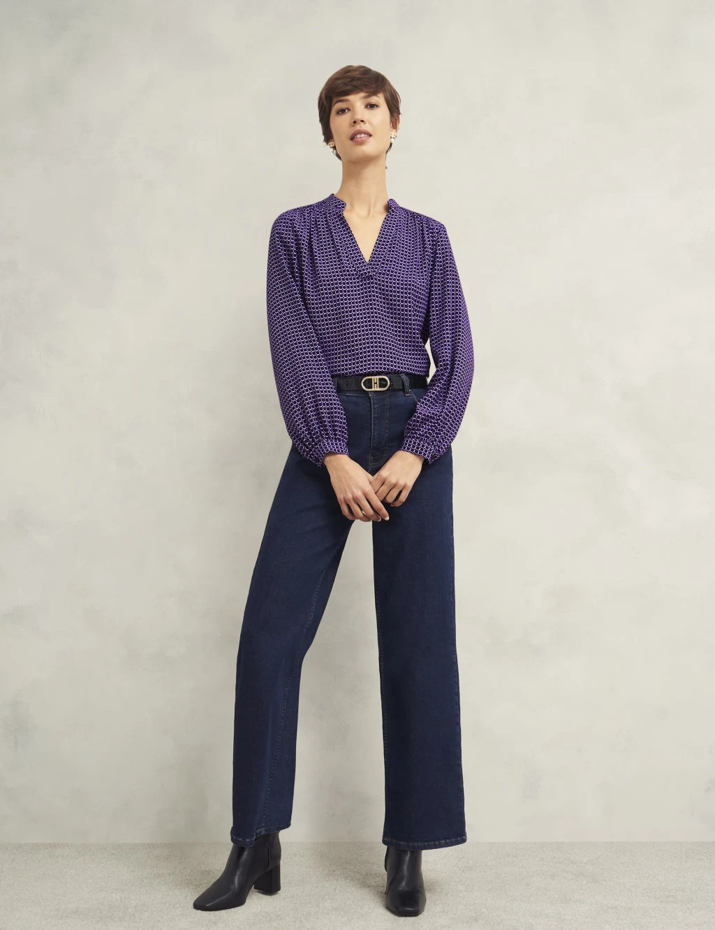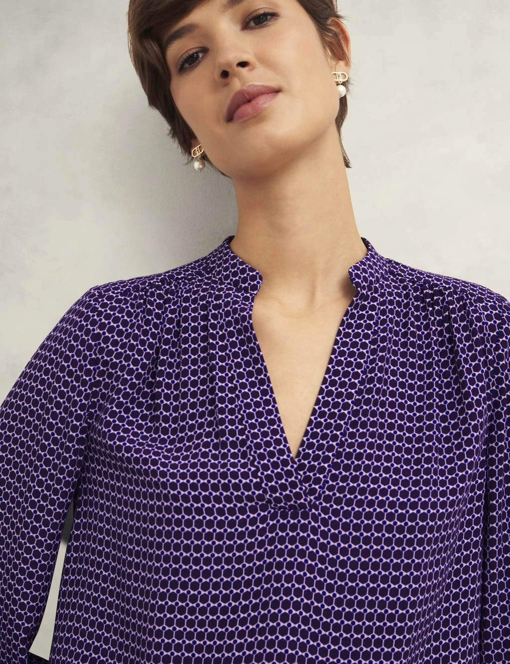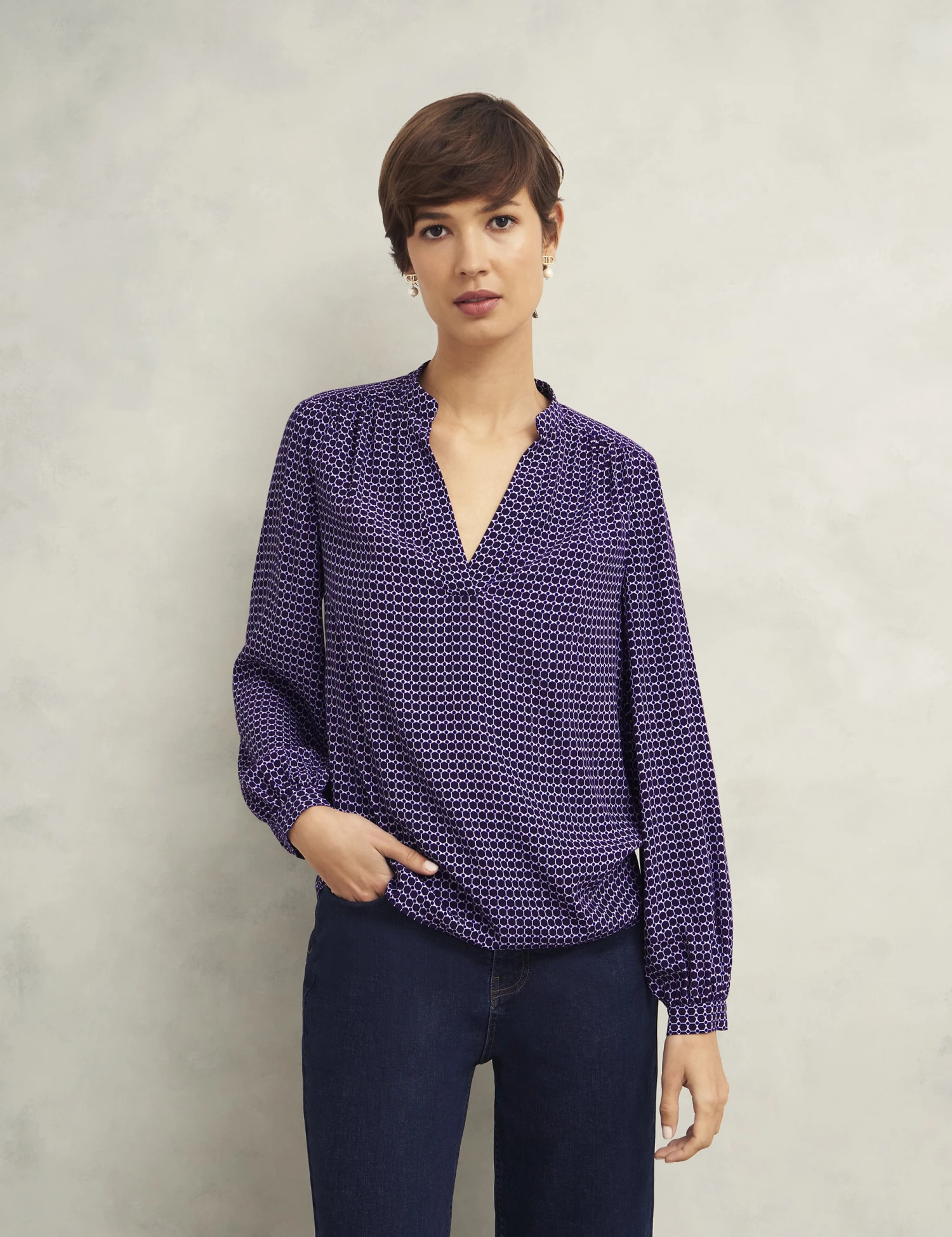 Stand out in this Hobbs blouse, featuring a bold all-over geometric print. It’s cut in a comfy regular fit, with a feminine v-neckline and long sleeves with neat cuffs.