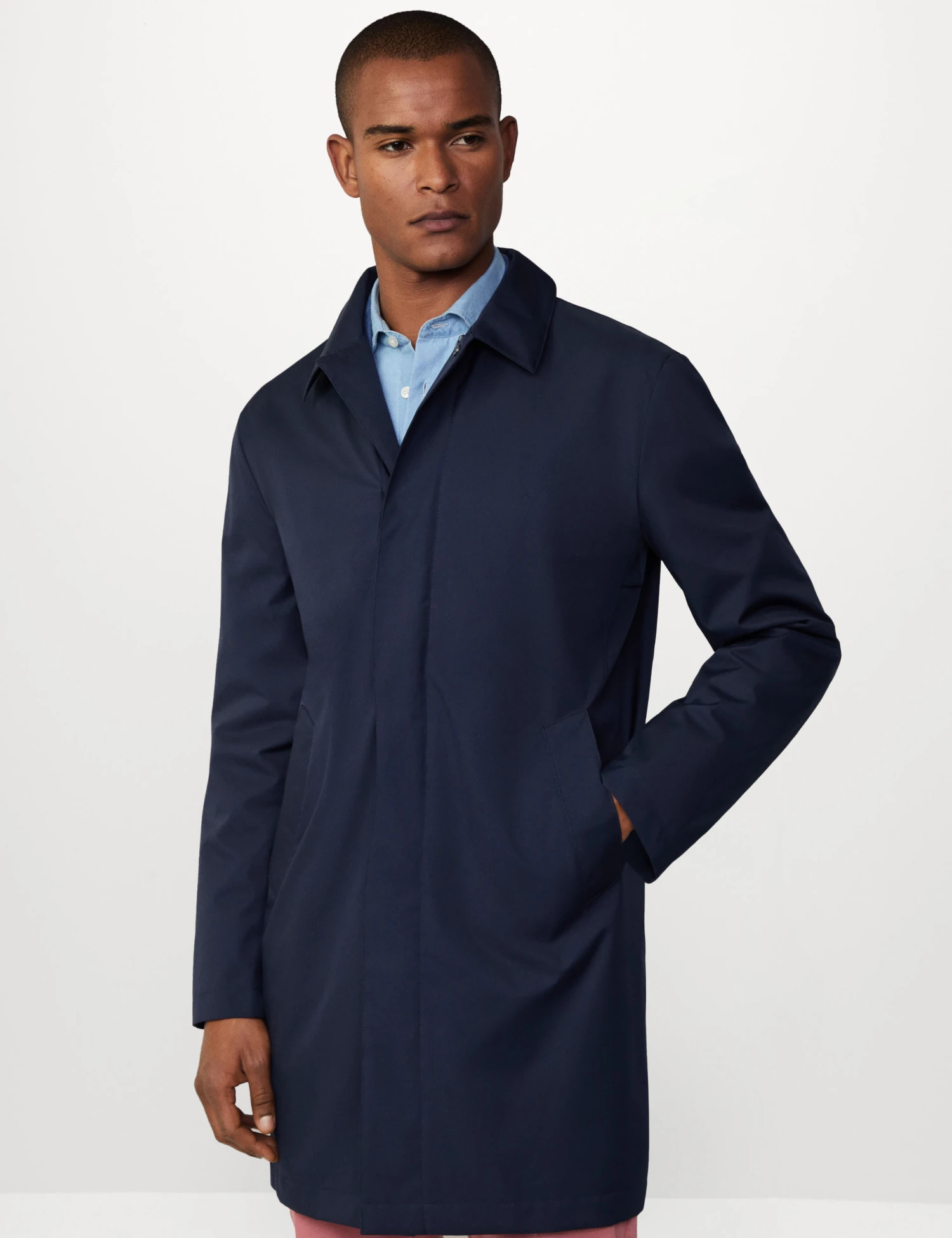 This timeless mac from Hackett is an easy choice for smart occasions. It’s made in a regular fit with a technical fabric that’s specially treated to provide protection from wind and light rain showers. The neat collar leads to a concealed popper-through fastening, while the side pockets are ideal for keeping essentials close.